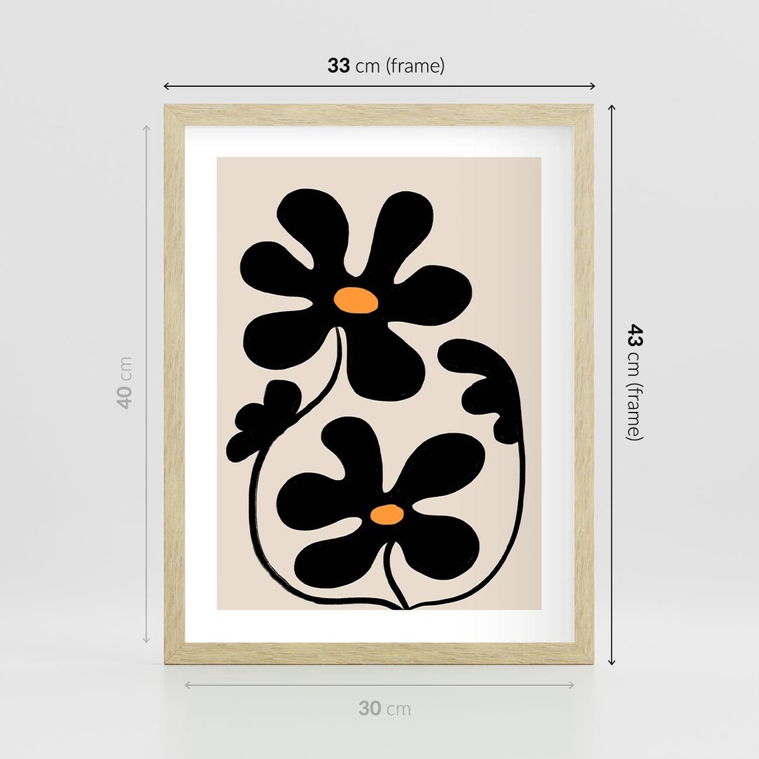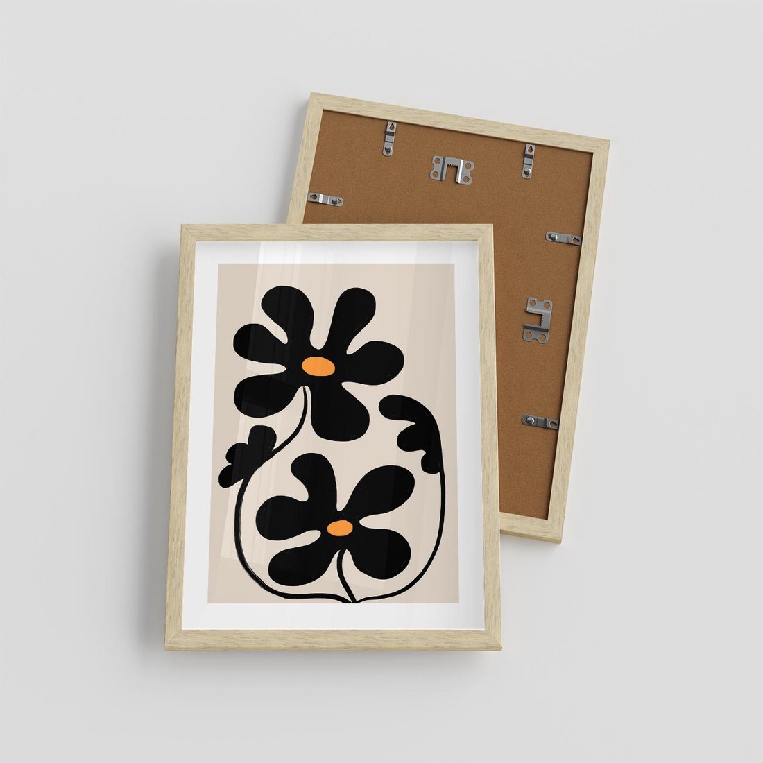 Plakat w ramie 30x40 - Wyjątkowość Boho - minimalistyczny abstrakcyjny obraz, prymitywne kwiaty - rama drewno