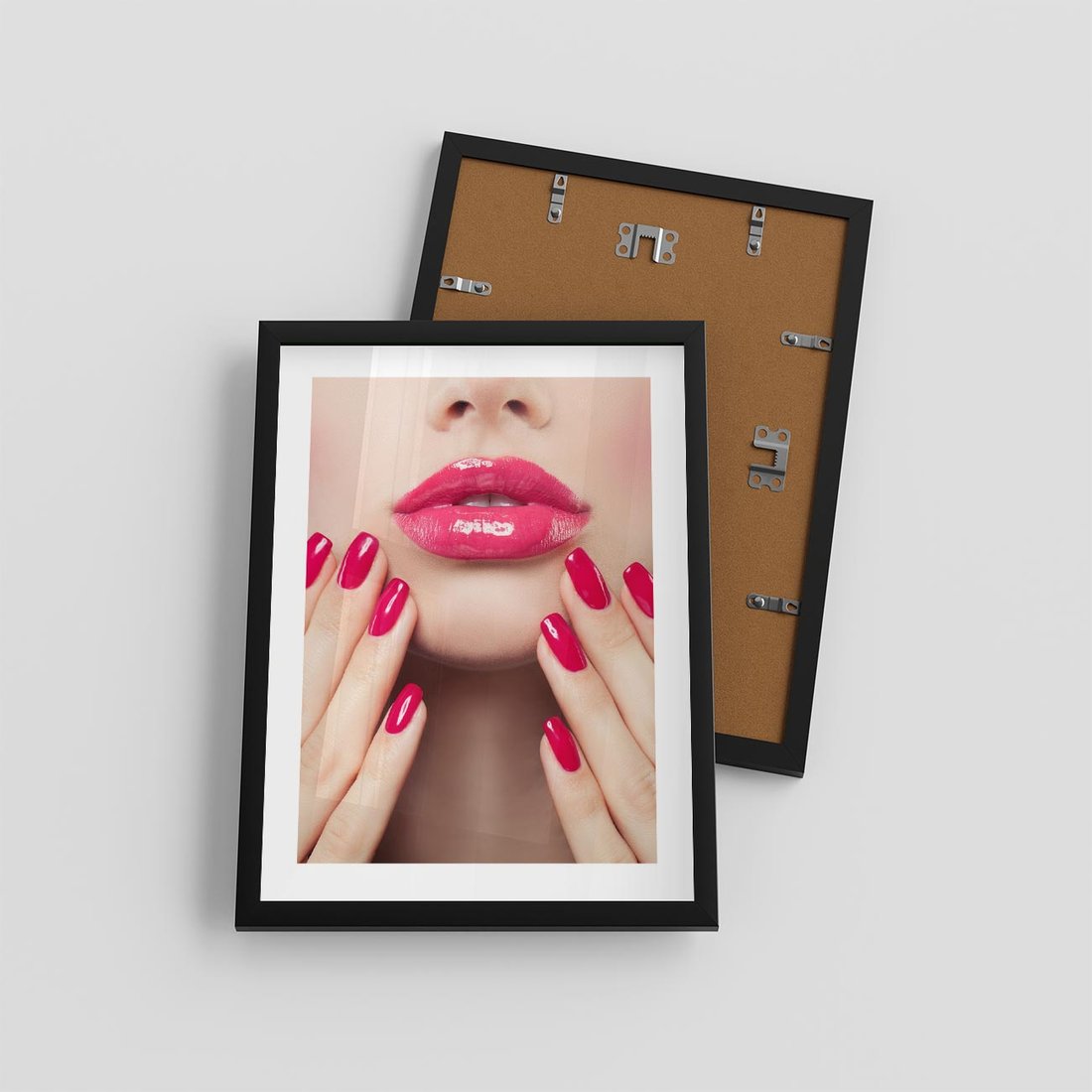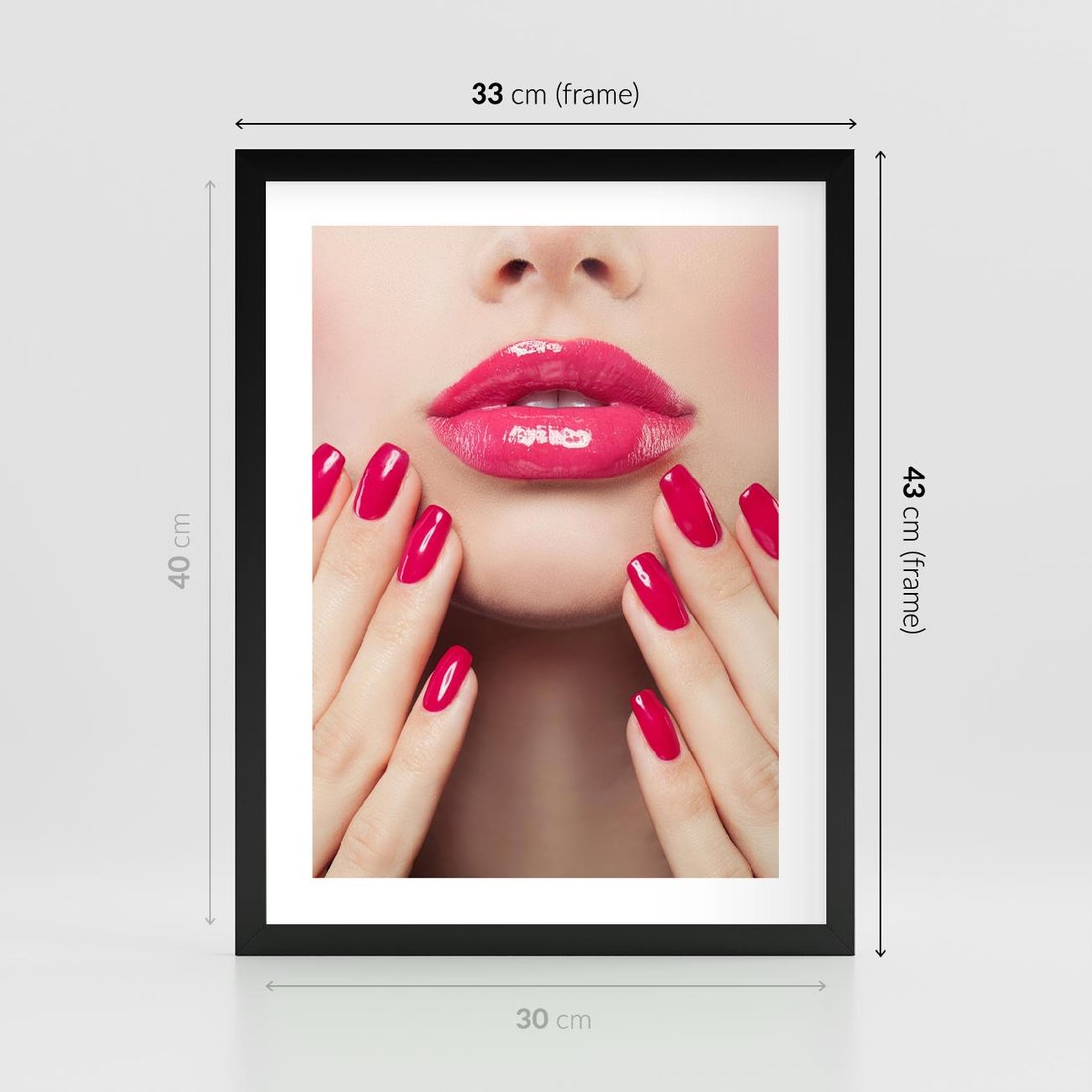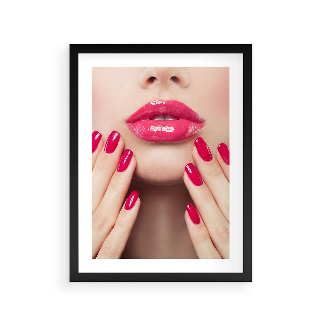 Plakat w ramie 30x40 - Wyrażenie Piękna - paznokcie, usta - rama czarna