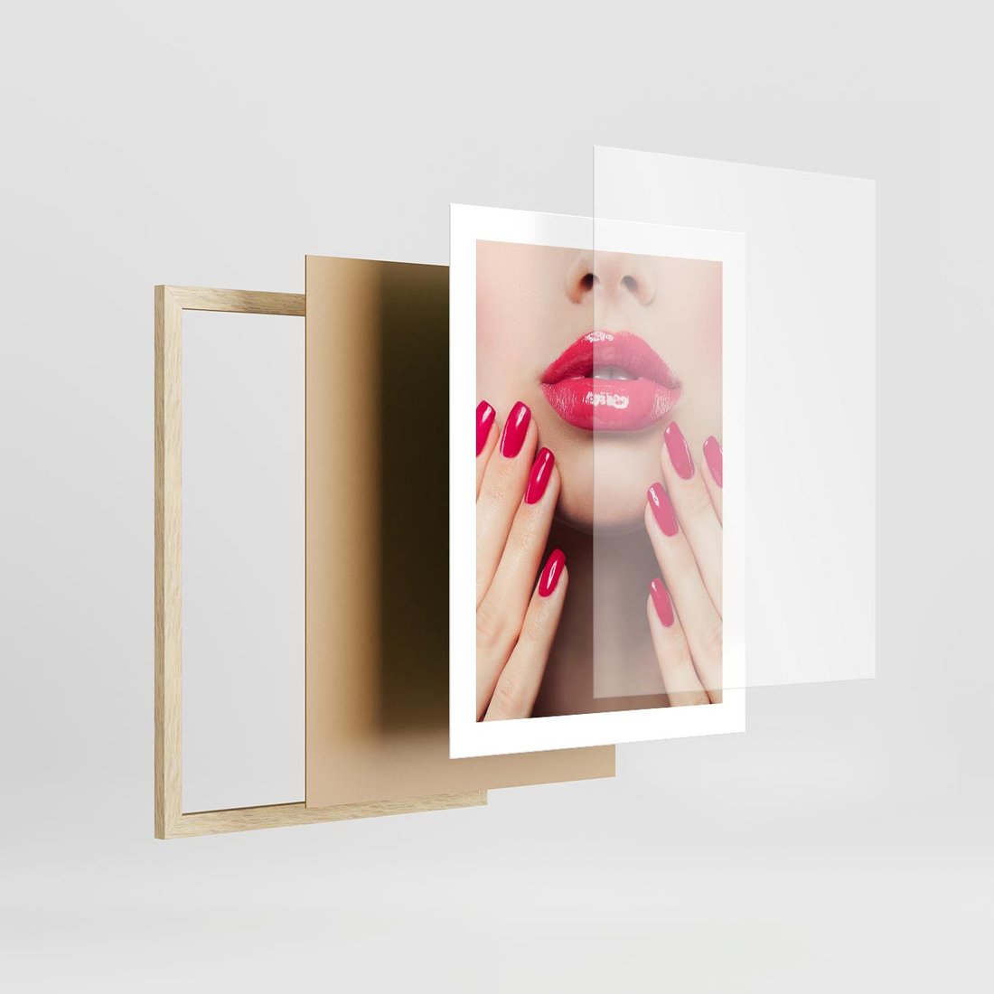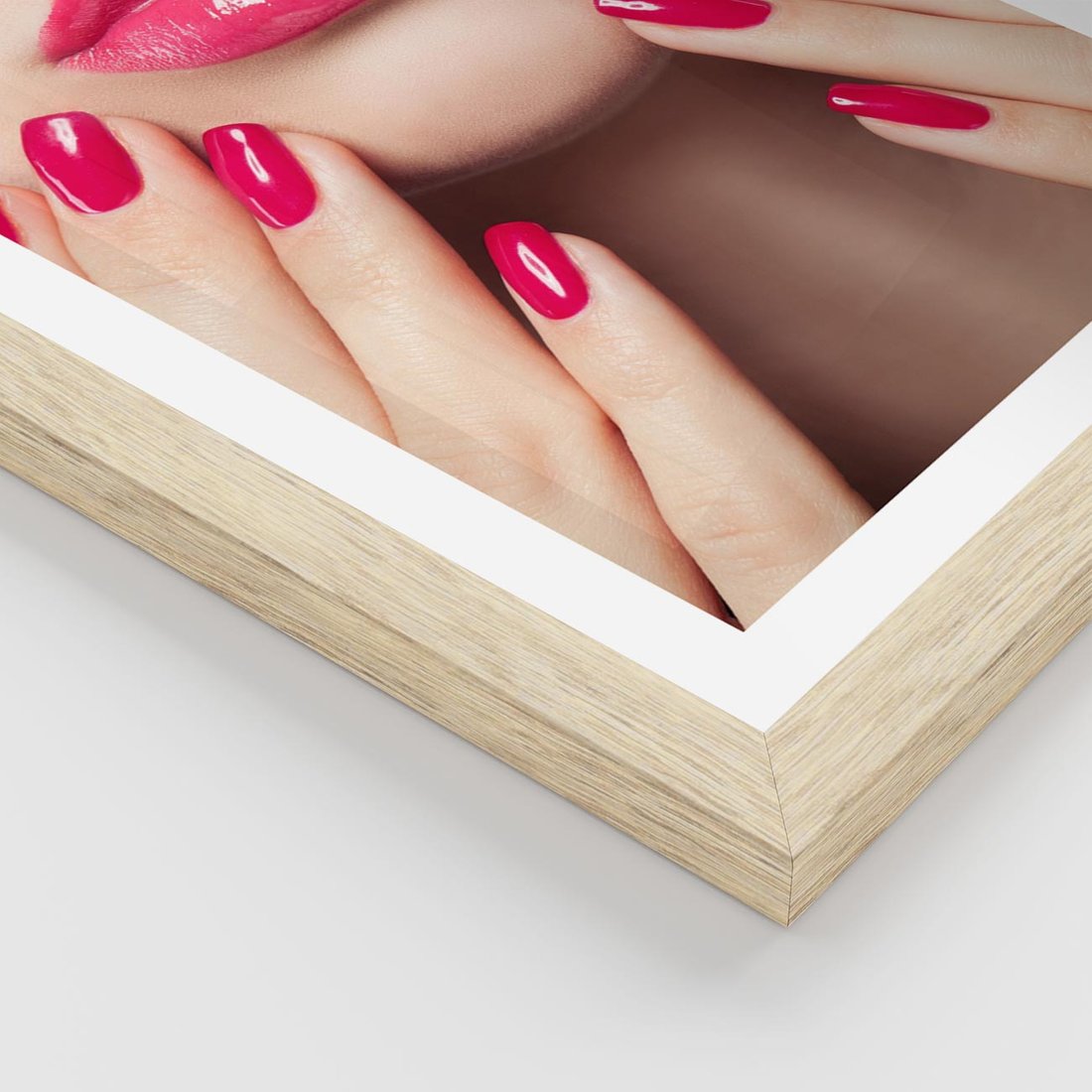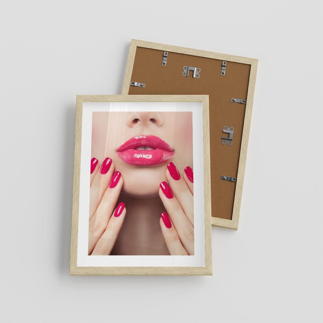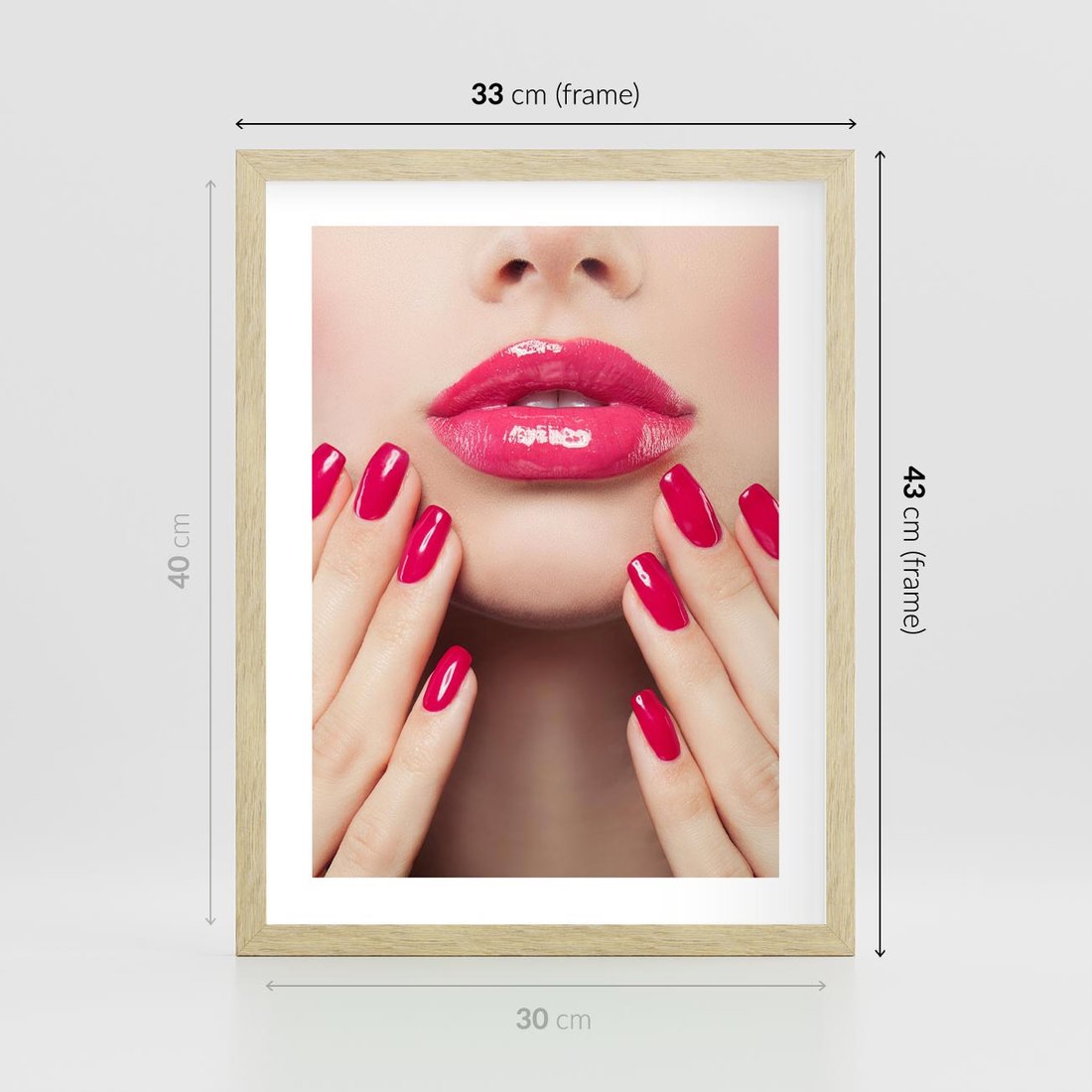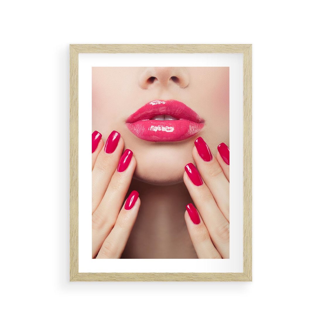 Plakat w ramie 30x40 - Wyrażenie Piękna - paznokcie, usta - rama drewno