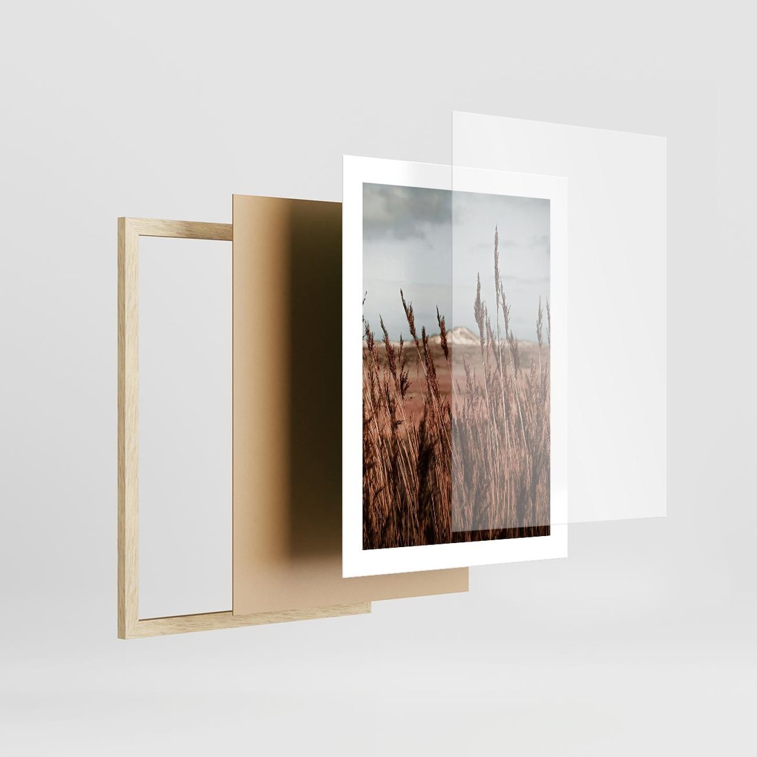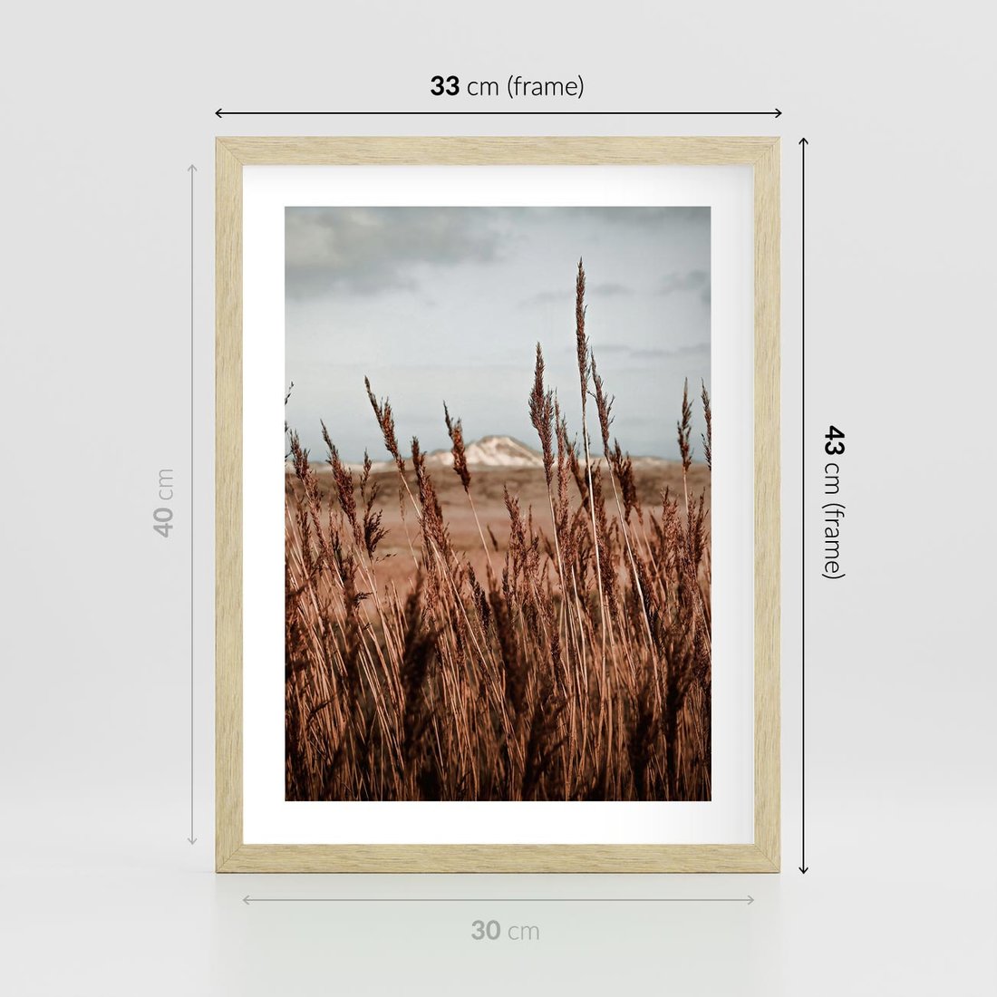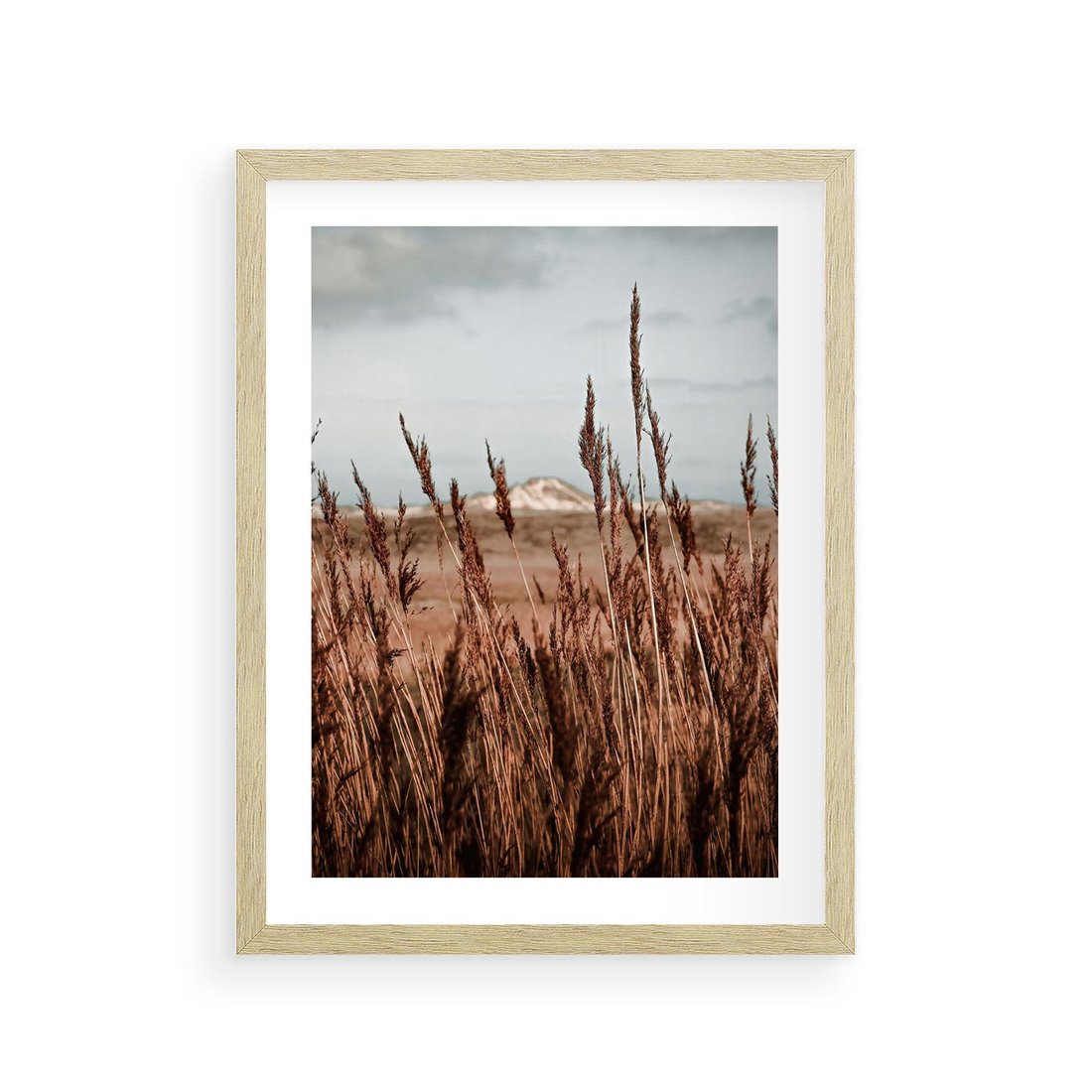 Plakat w ramie 30x40 - Wysokie Trawy w Górskim Krajobrazie - suche trawy, wysokie trawy - rama drewno