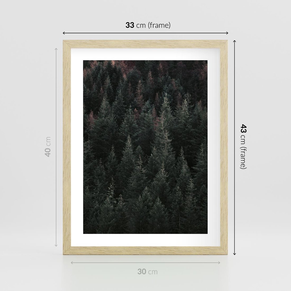 Plakat w ramie 30x40 - Wysoko nad Iglastym Lasem - las, perspektywa - rama drewno
