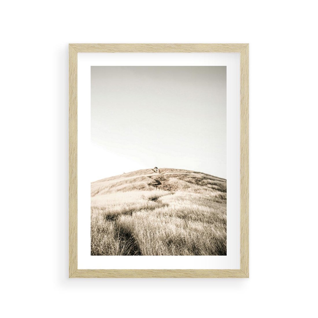 Plakat w ramie 30x40 - Wzgórze w Odcieniach Sepii - wzgórze, trawy - rama drewno
