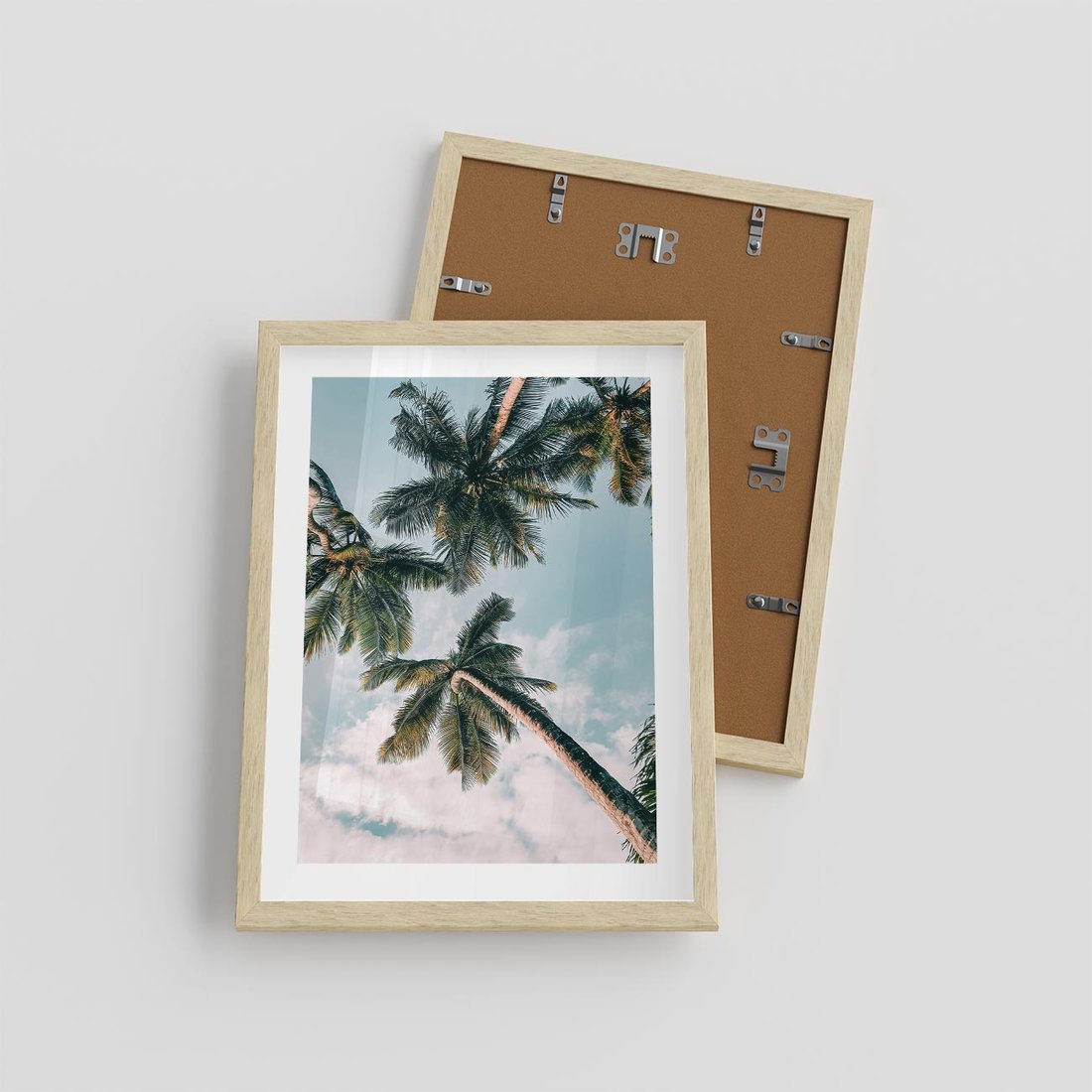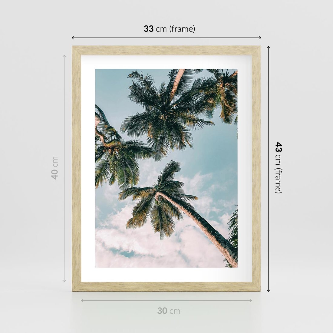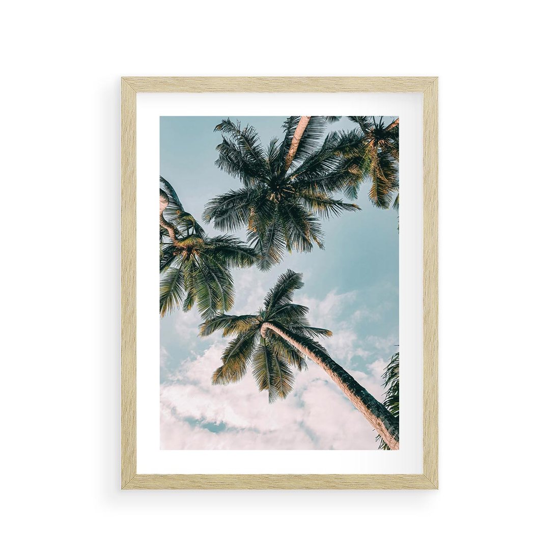 Plakat w ramie 30x40 - Wzrok ku Niebu - palmy na tle nieba, ujęcie z dołu - rama drewno