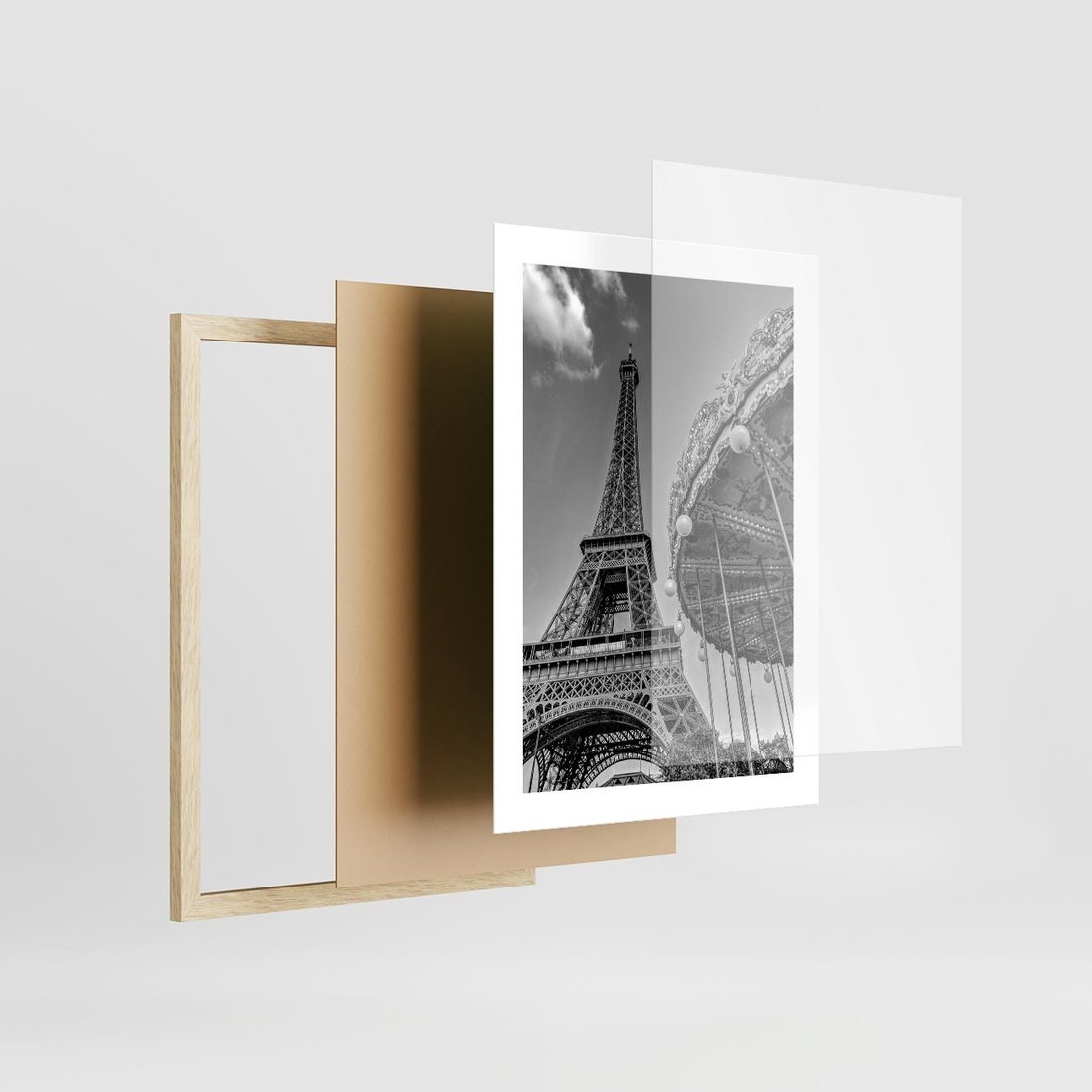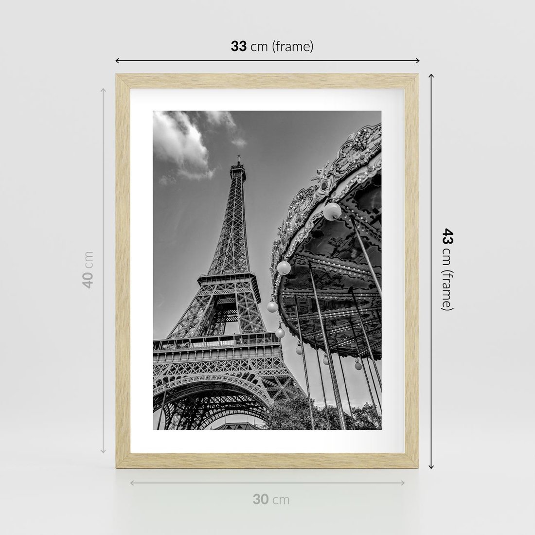 Plakat w ramie 30x40 - Zabawa w Paryżu - czarno białe zdjecie, wieża eiffla - rama drewno