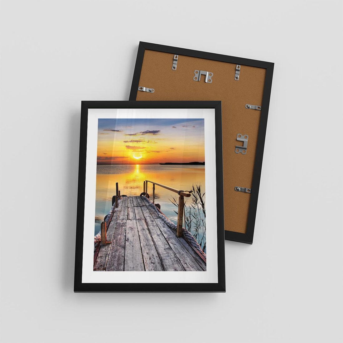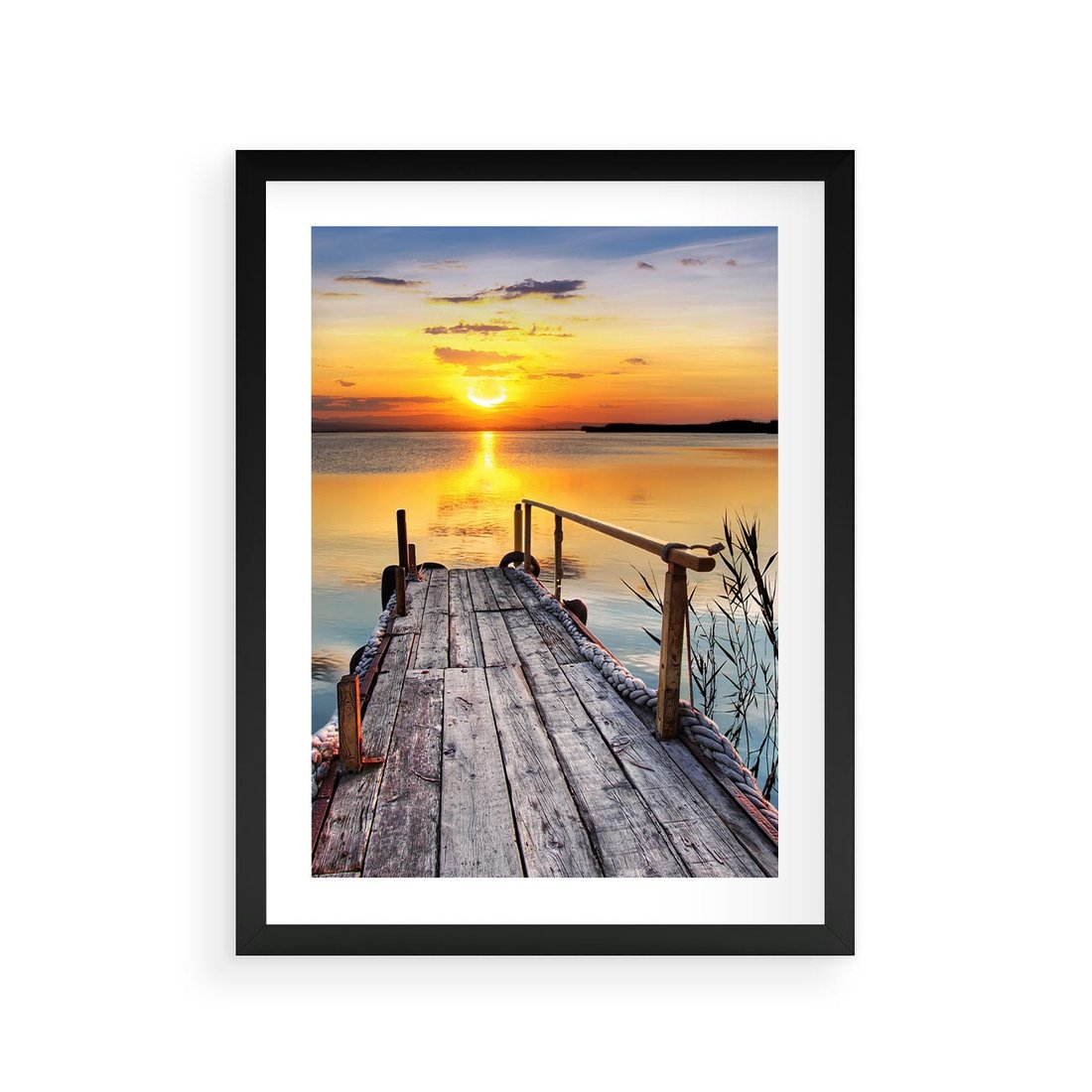 Plakat w ramie 30x40 - Zachód nad jeziorem z pomostem - pomost, jezioro - rama czarna