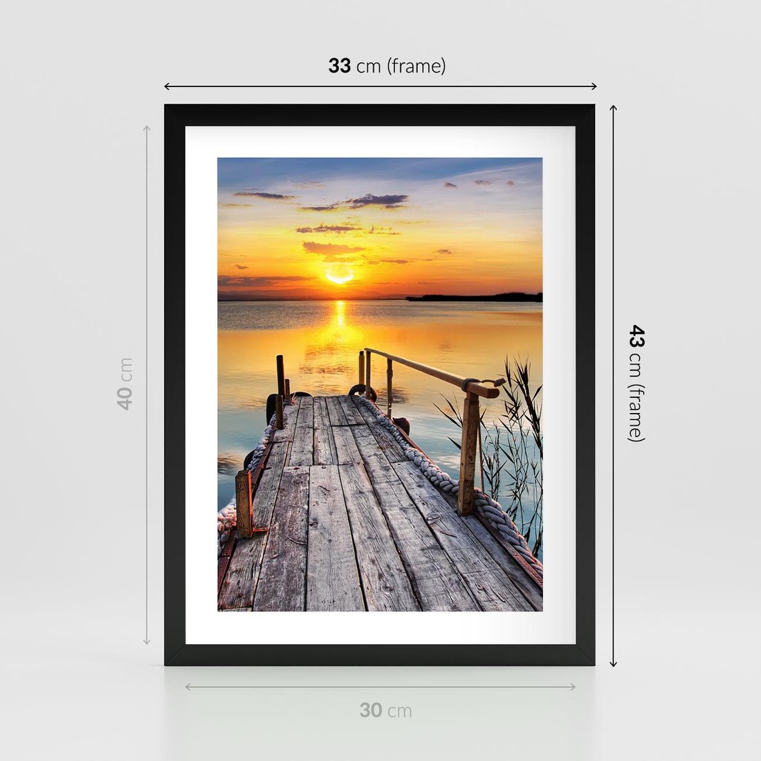 - Plakat w ramie 30x40 - Zachód nad jeziorem z pomostem