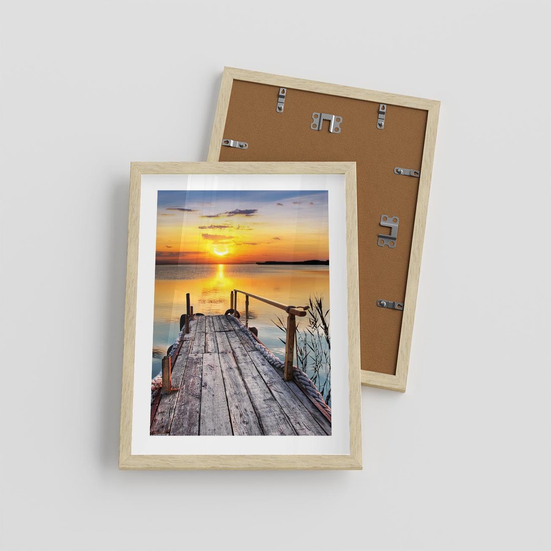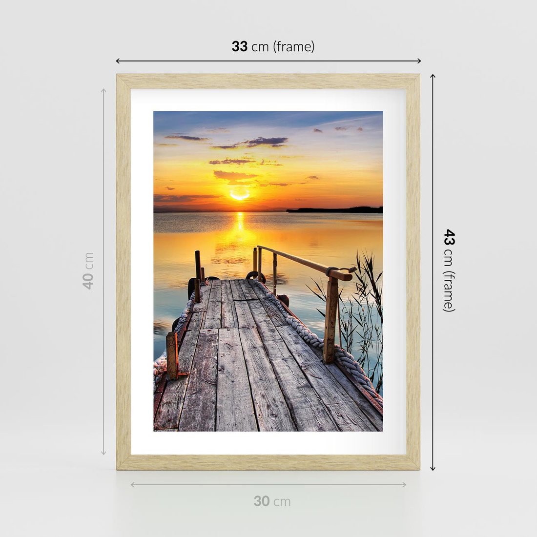 - Plakat w ramie 30x40 - Zachód nad jeziorem z pomostem