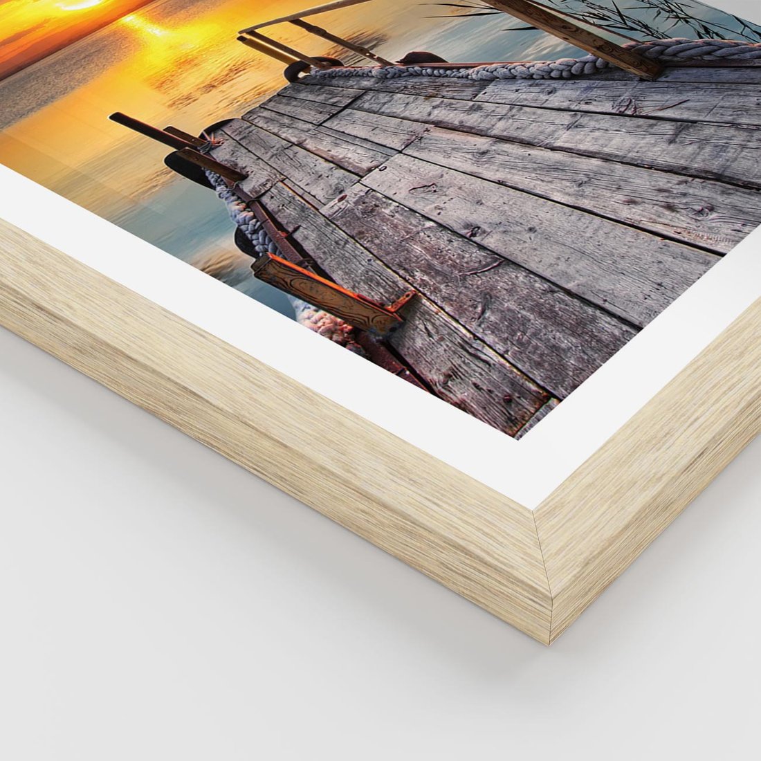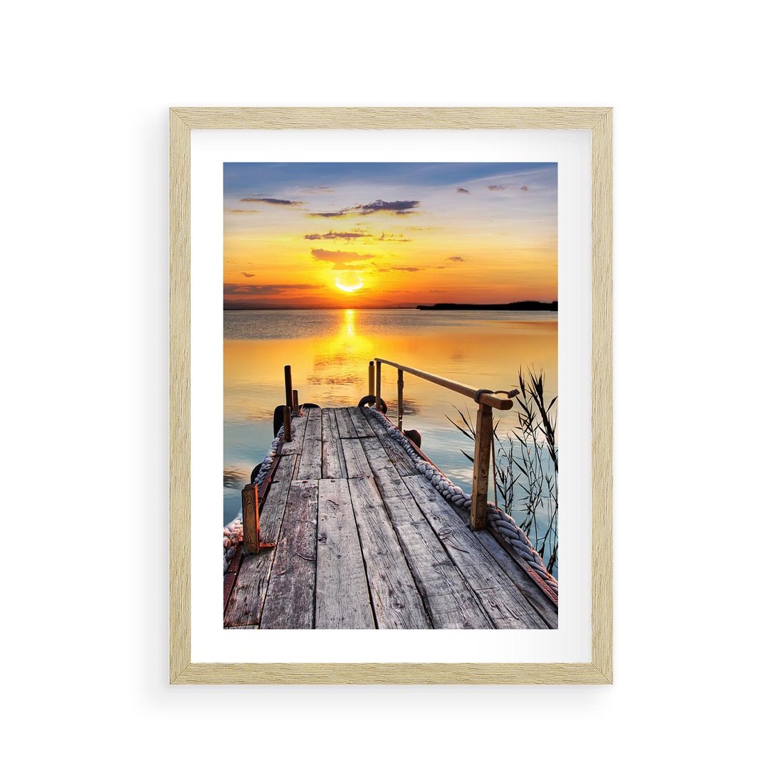 Plakat w ramie 30x40 - Zachód nad jeziorem z pomostem - pomost, jezioro - rama drewno