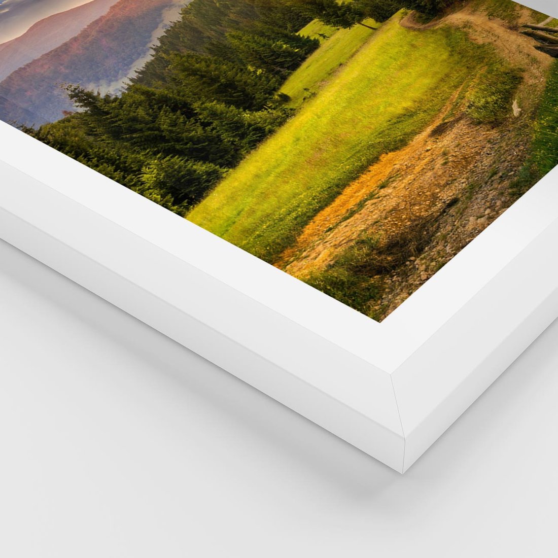 Plakat w ramie 30x40 - Zachód słońca na łące - zachód, łąka - rama biała
