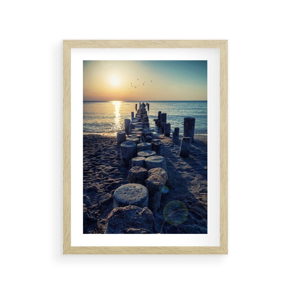 Plakat w ramie 30x40 - Zachód Słońca nad Morzem - morze, zachód - rama drewno