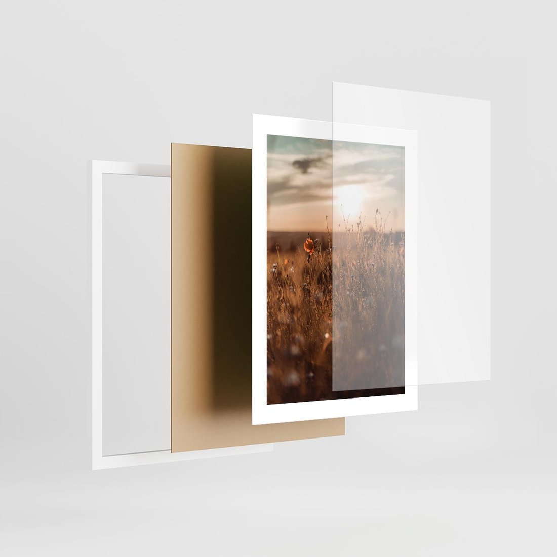 Plakat w ramie 30x40 - Zachwyt zachodem słońca na łące - zachód, słońca - rama biała