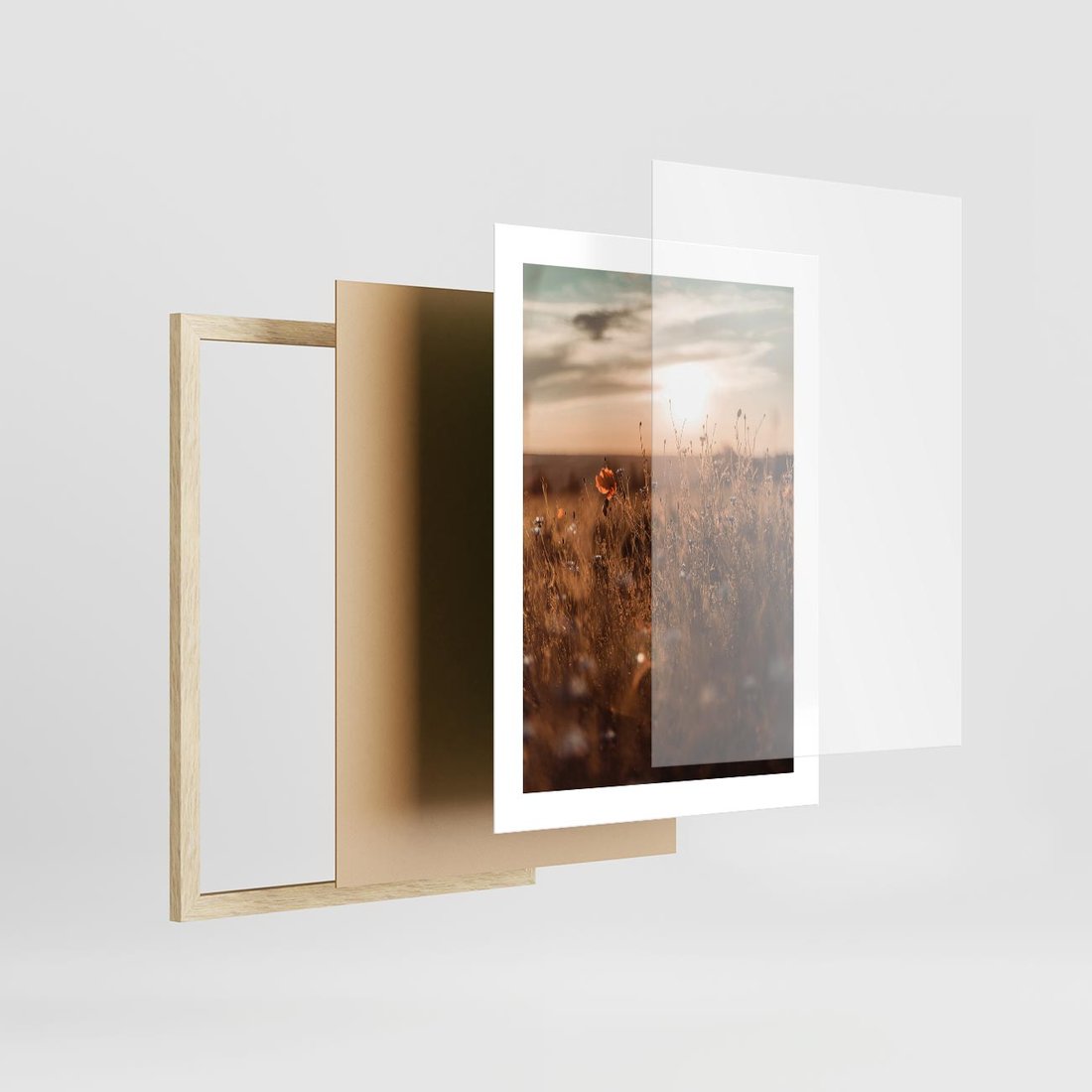 Plakat w ramie 30x40 - Zachwyt zachodem słońca na łące - zachód, słońca - rama drewno