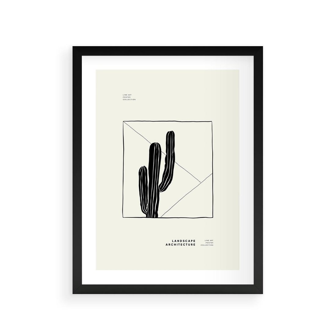 Ta nowoczesna sztuka łączy minimalistyczny styl z urokiem kaktusów, tworząc unikalny motyw roślinny. Delikatna typografia dopełnia kompozycję, przekazując spokojną i inspirującą esencję natury.