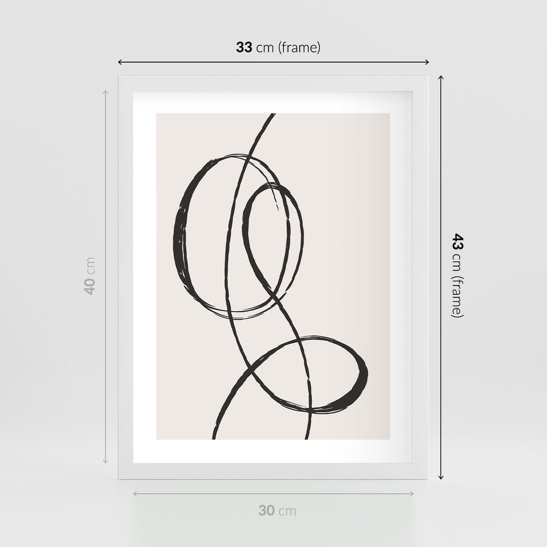 Plakat w ramie 30x40 - Zaklęte Linie - abstrakcyjne szkicowane linie, minimalizm - rama biała