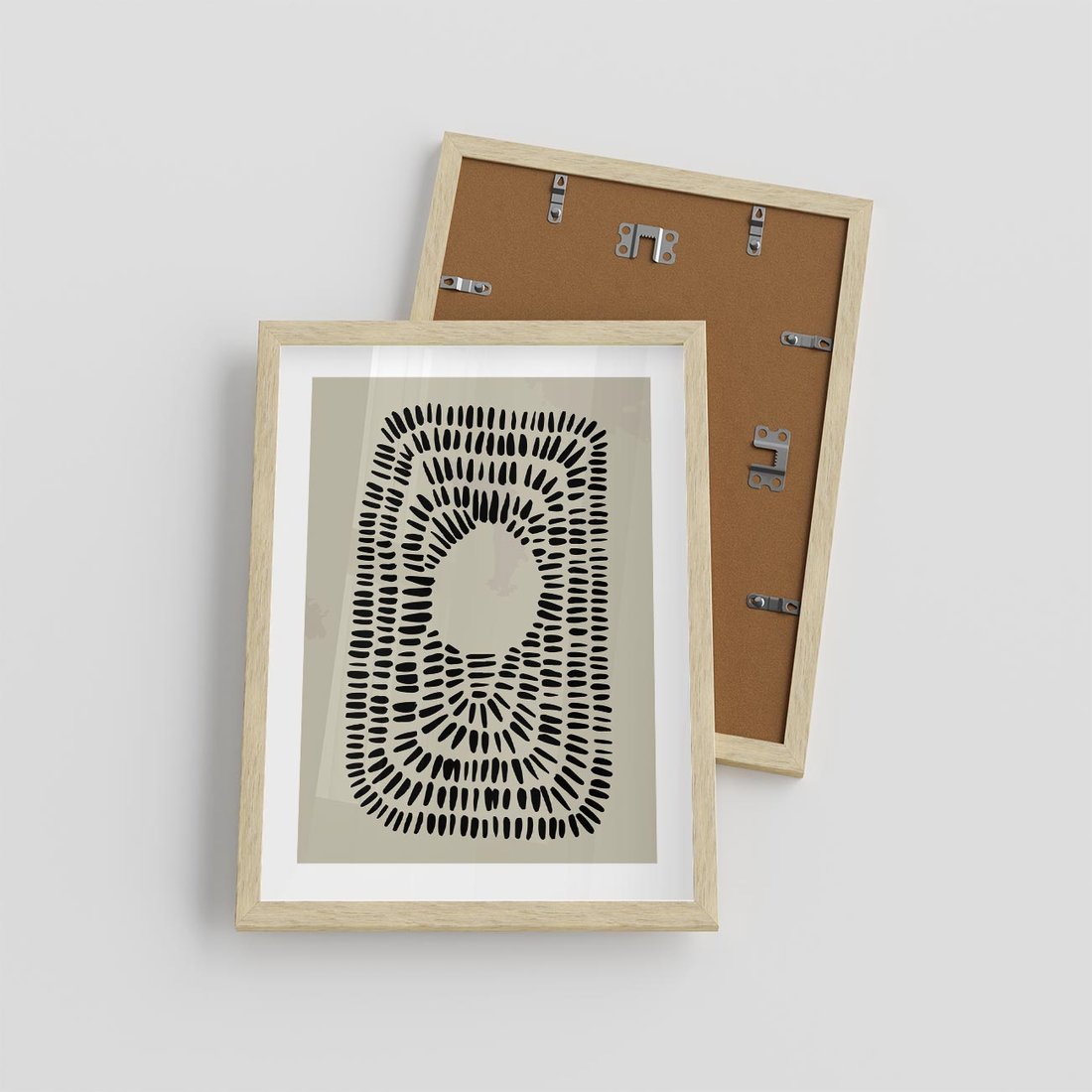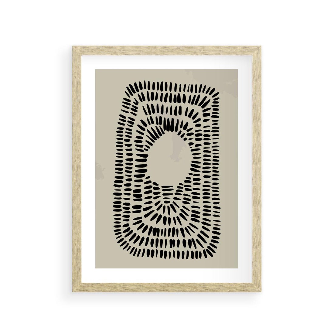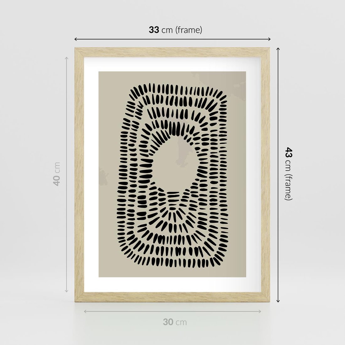 Plakat w ramie 30x40 - Zaklęte Wnętrza - boho plakat, czarne kropki kreski - rama drewno