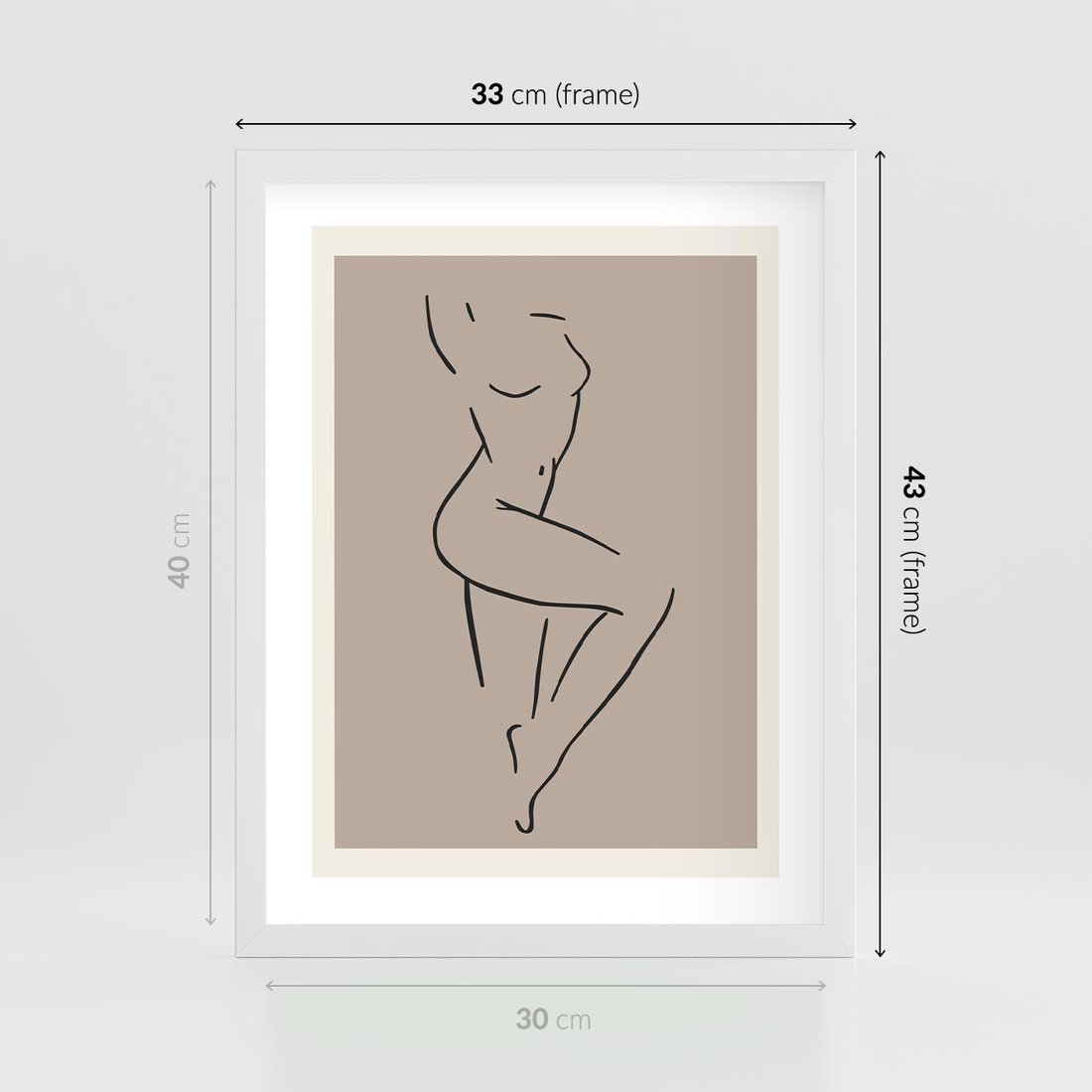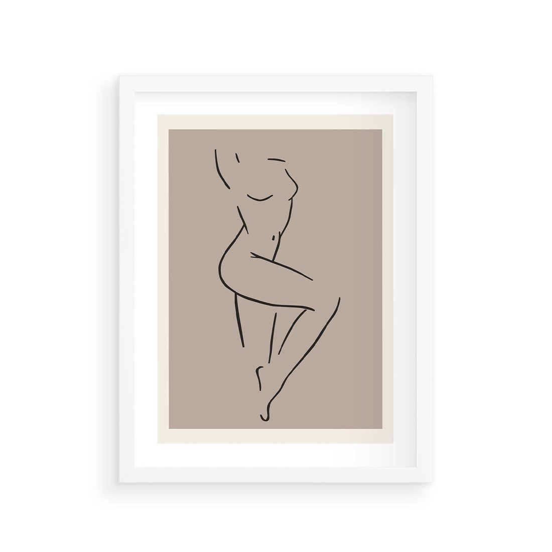 Plakat w ramie 30x40 - Zanikająca Wyobraźnia - mnimalistyczny akt, beżowa tonacja - rama biała
