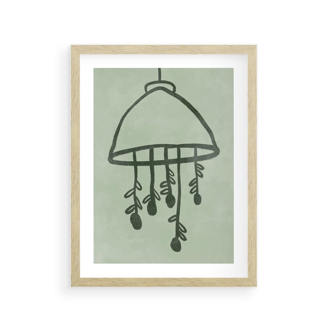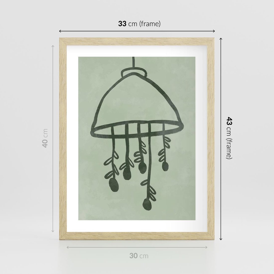 Plakat w ramie 30x40 - Zieleń Inspirującego Spokoju - plakat z abstrakcyjną zieloną lampą, skandynawski design - rama drewno