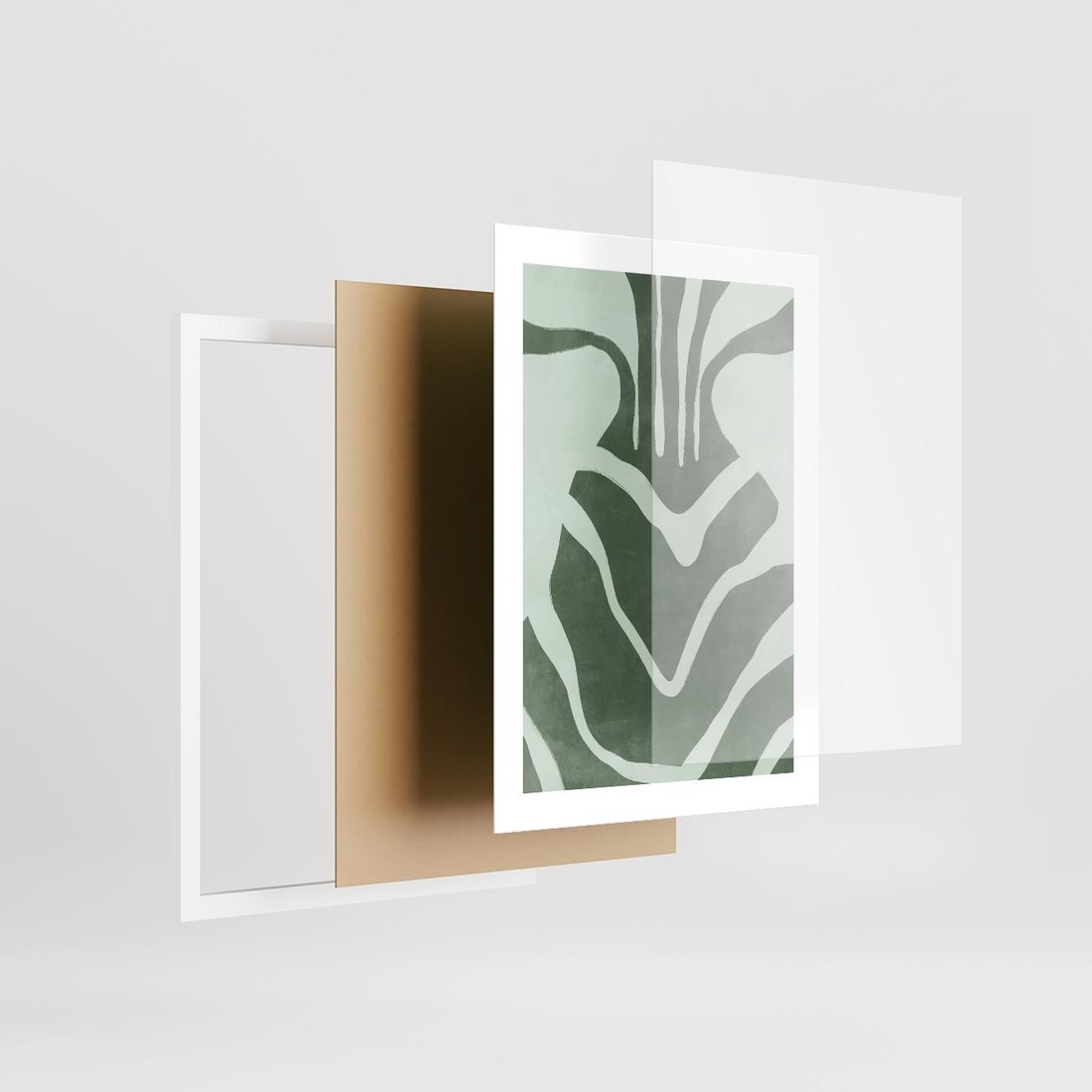 Abstrakcyjny plakat w odcieniach zieleni, z nieregularnymi i splątanymi liniami, doskonale pasuje do nowoczesnych wnętrz. Jego minimalistyczny charakter dodaje subtelności i wyjątkowości aranżacji.