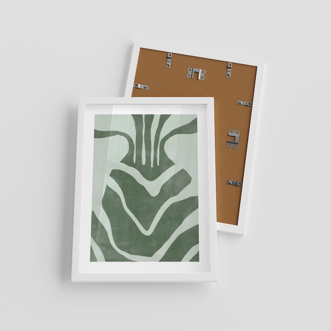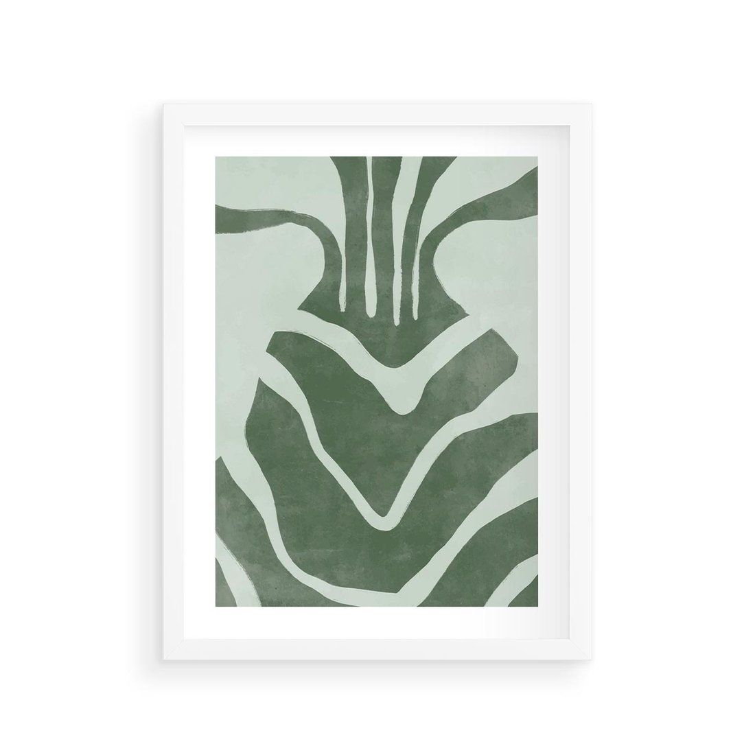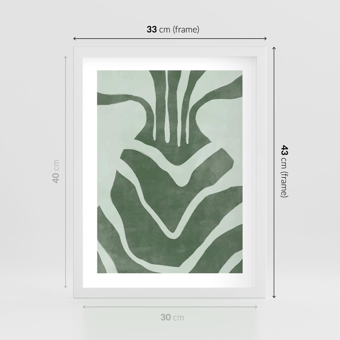 Plakat w ramie 30x40 - Zieleń Odpoczynku - zielony plakat, nieregularne splątane linie - rama biała