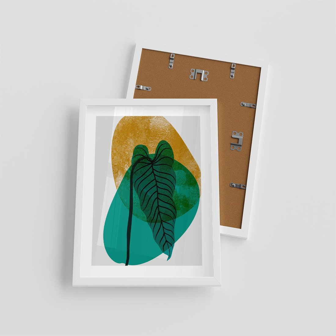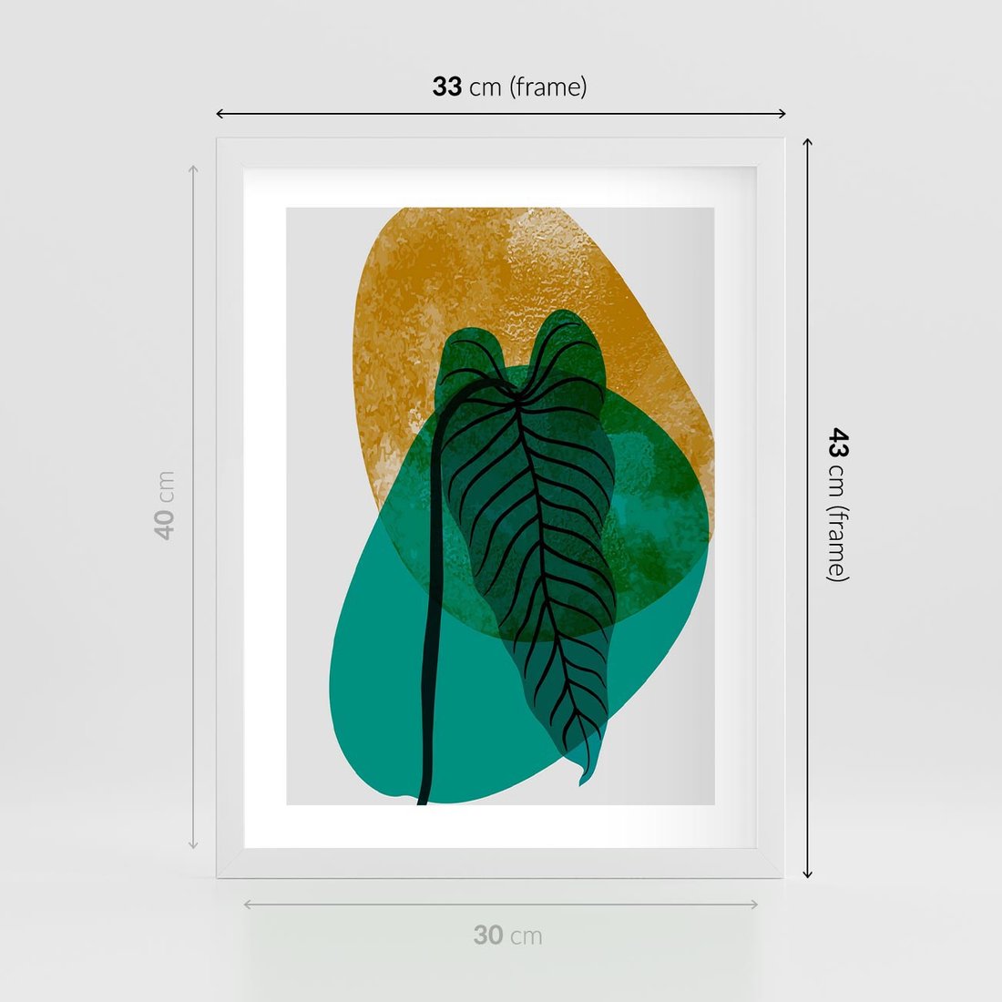 - Plakat w ramie 30x40 - Zielony Liść ze Złotą Plamą