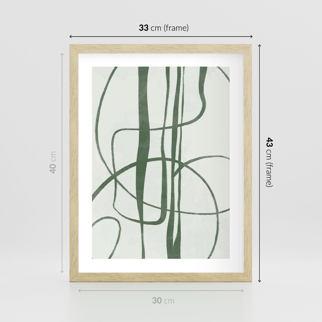 Plakat w ramie 30x40 - Zielony Spokój - zielona abstrakcja, spokojny plakat - rama drewno