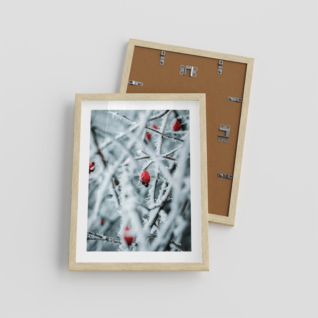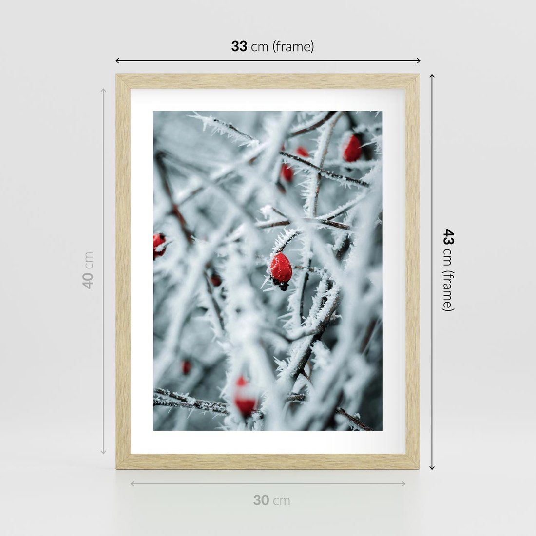 Plakat w ramie 30x40 - Zima na Gałęziach - zima, oszronione gałęzie - rama drewno