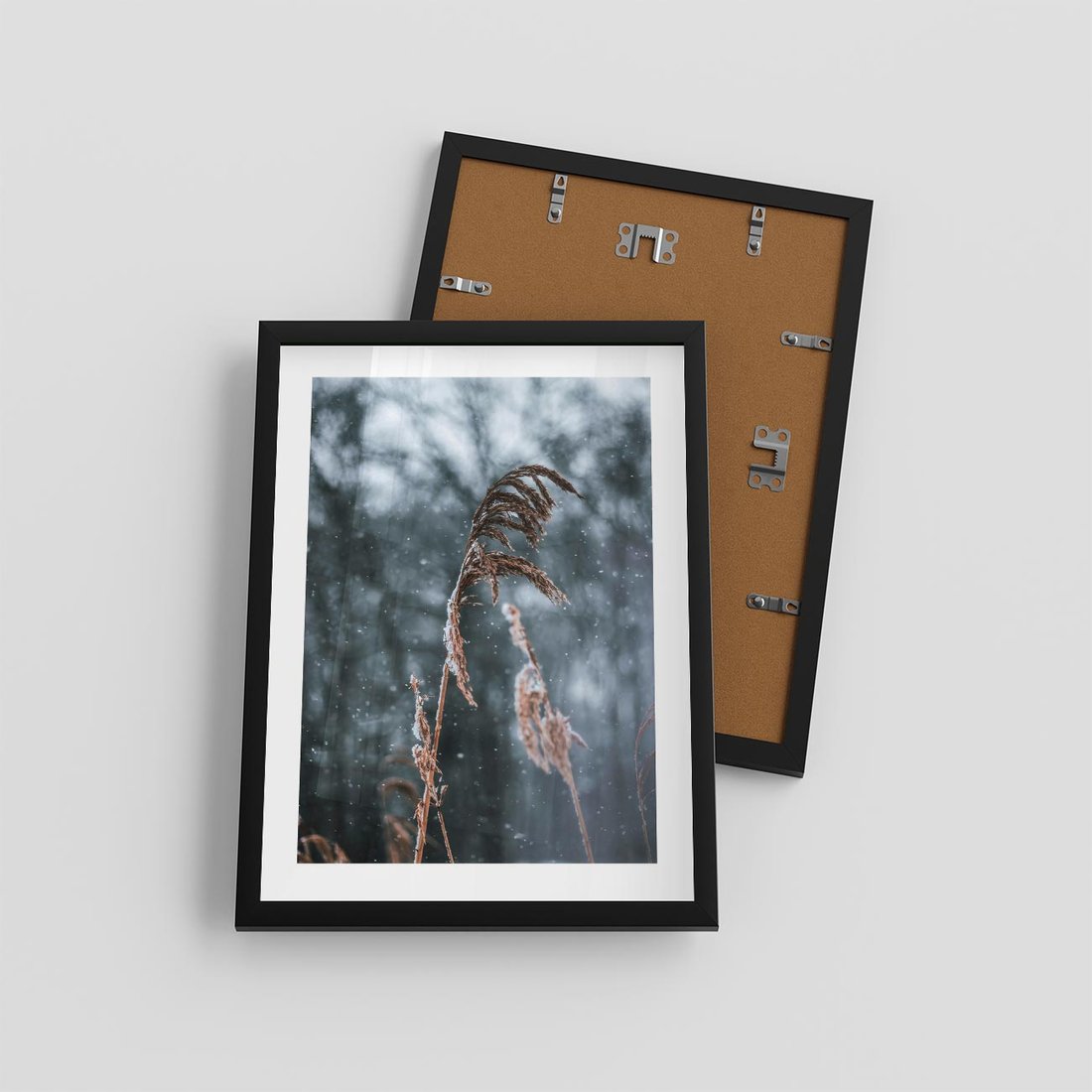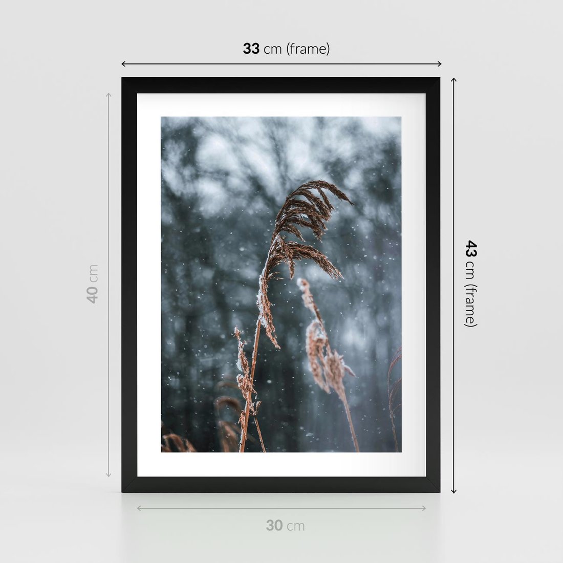 Plakat w ramie 30x40 - Zima na Łonie Natury - sucha wysoka trawa, w zimie - rama czarna