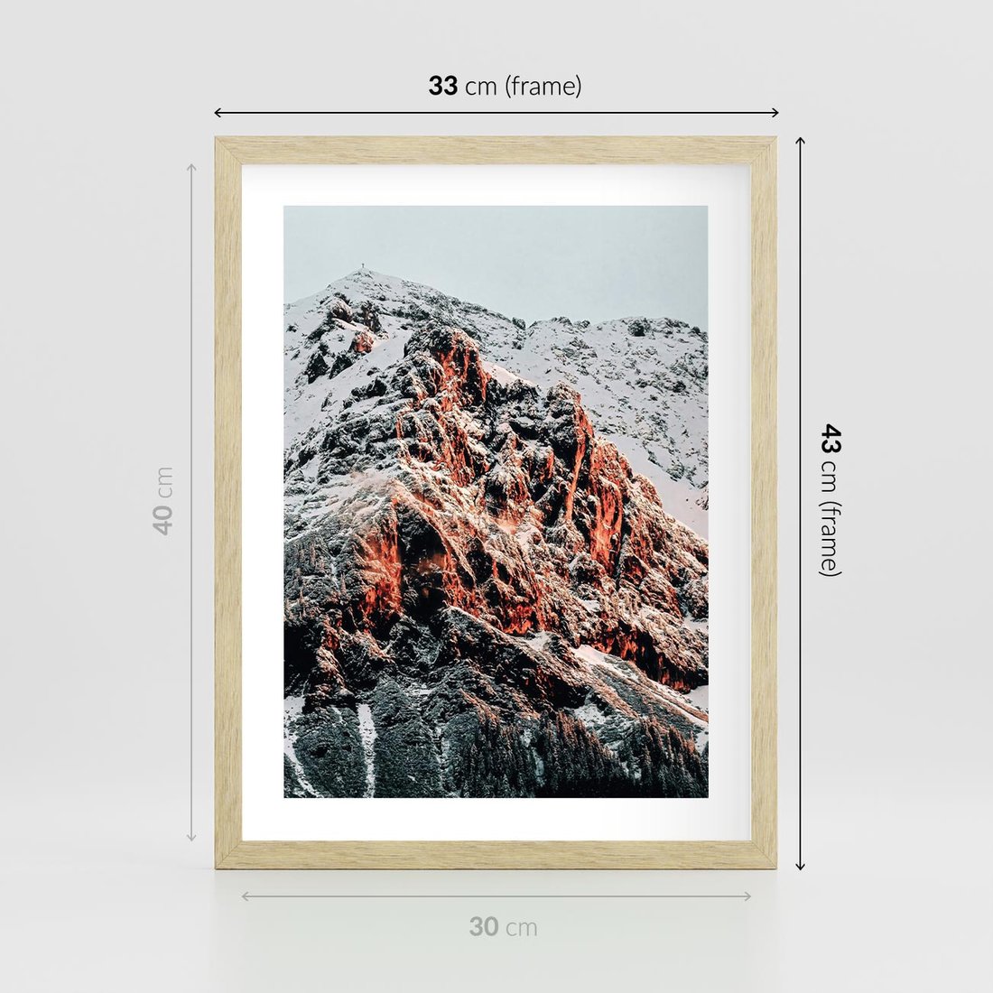 Plakat w ramie 30x40 - Zima na Szczycie - góry, zima - rama drewno