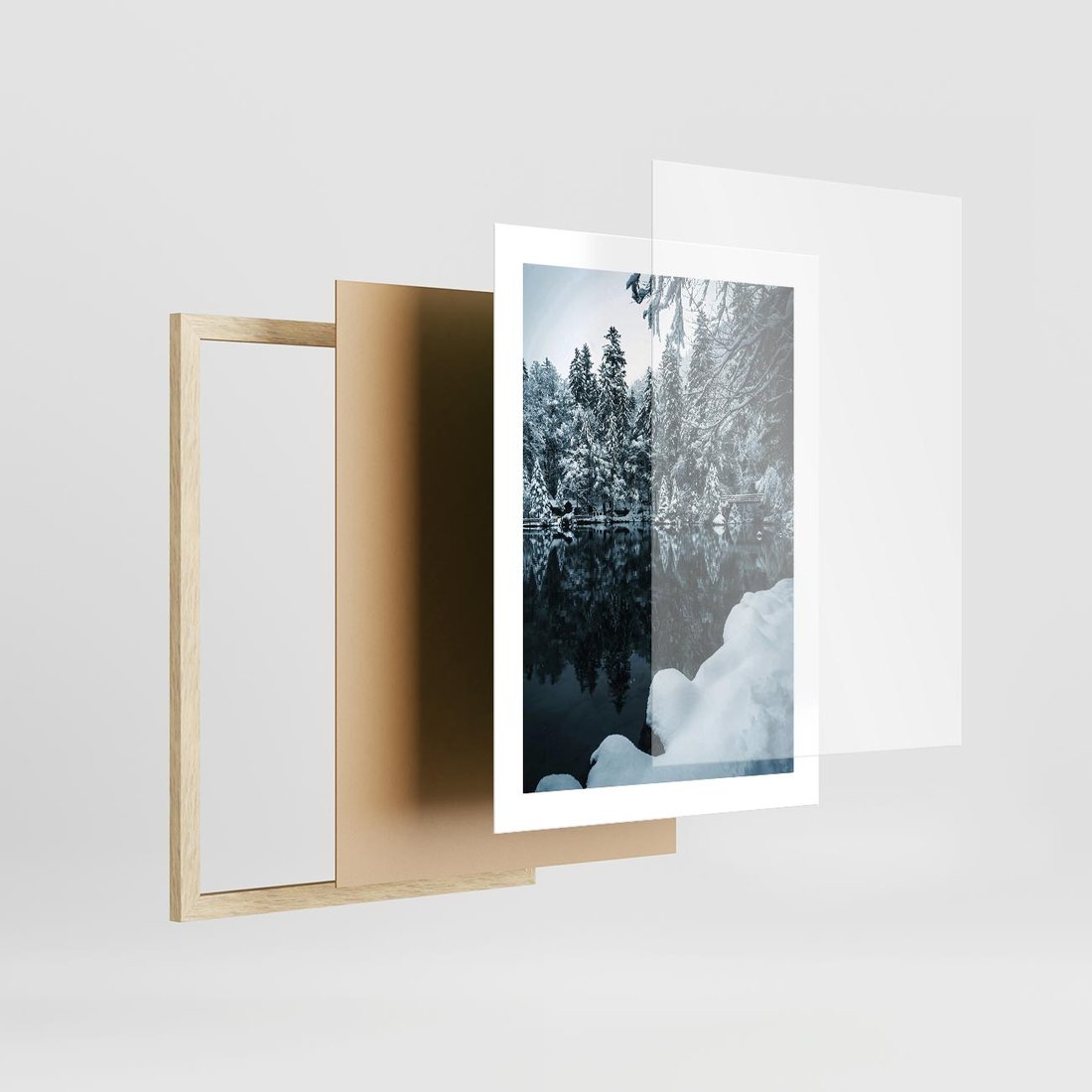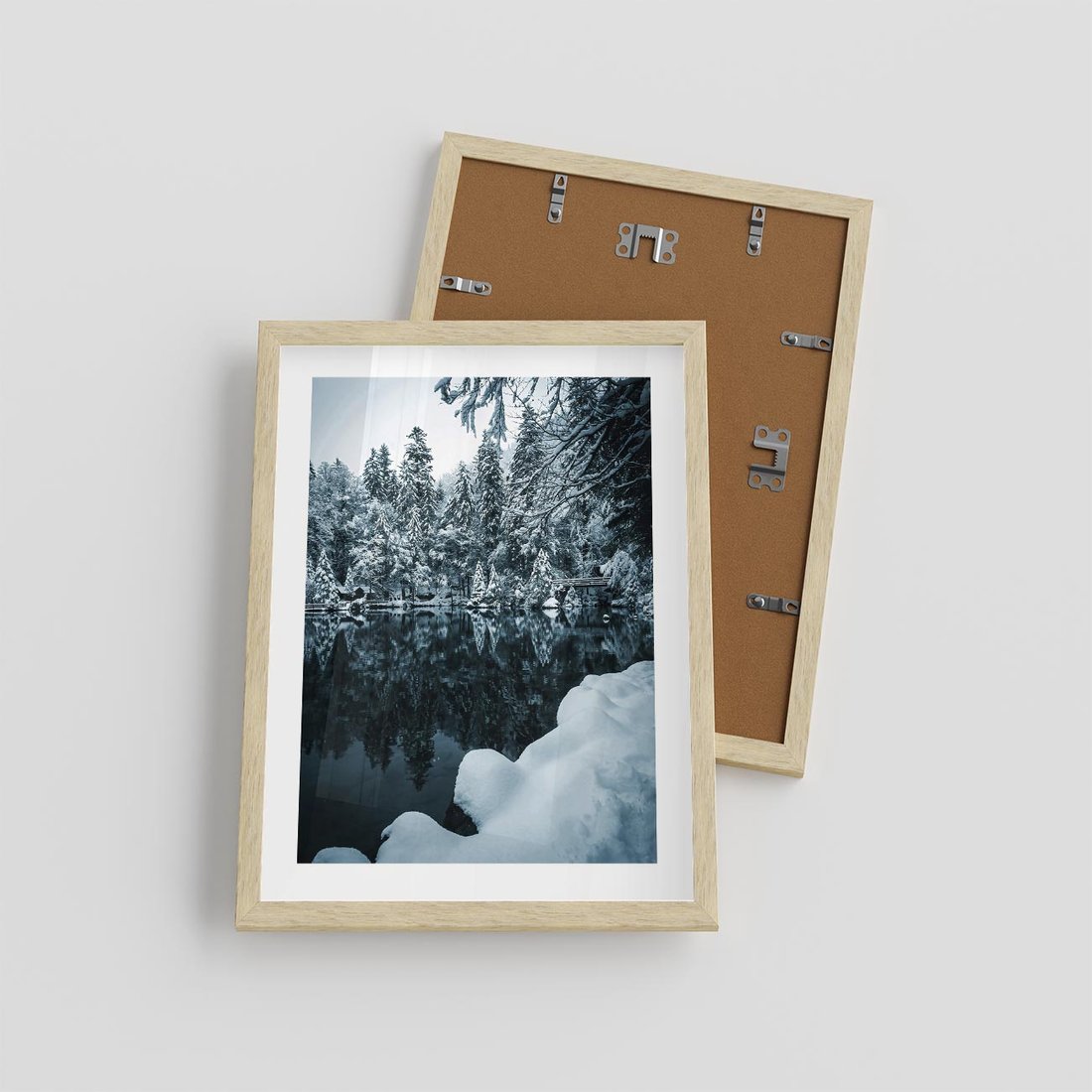 Plakat w ramie 30x40 - Zima nad Jeziorem - krajobraz zimowy, jezioro - rama drewno