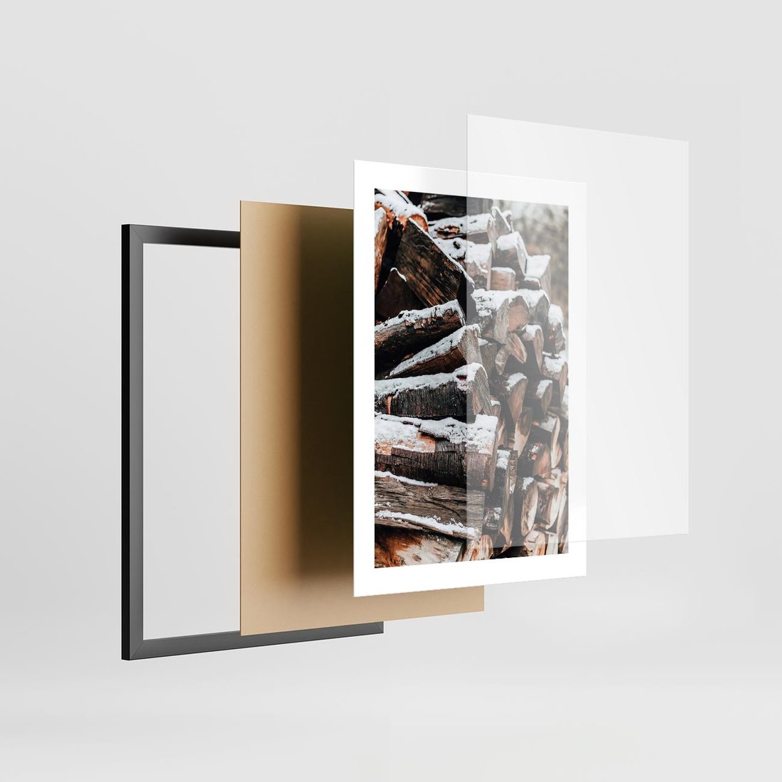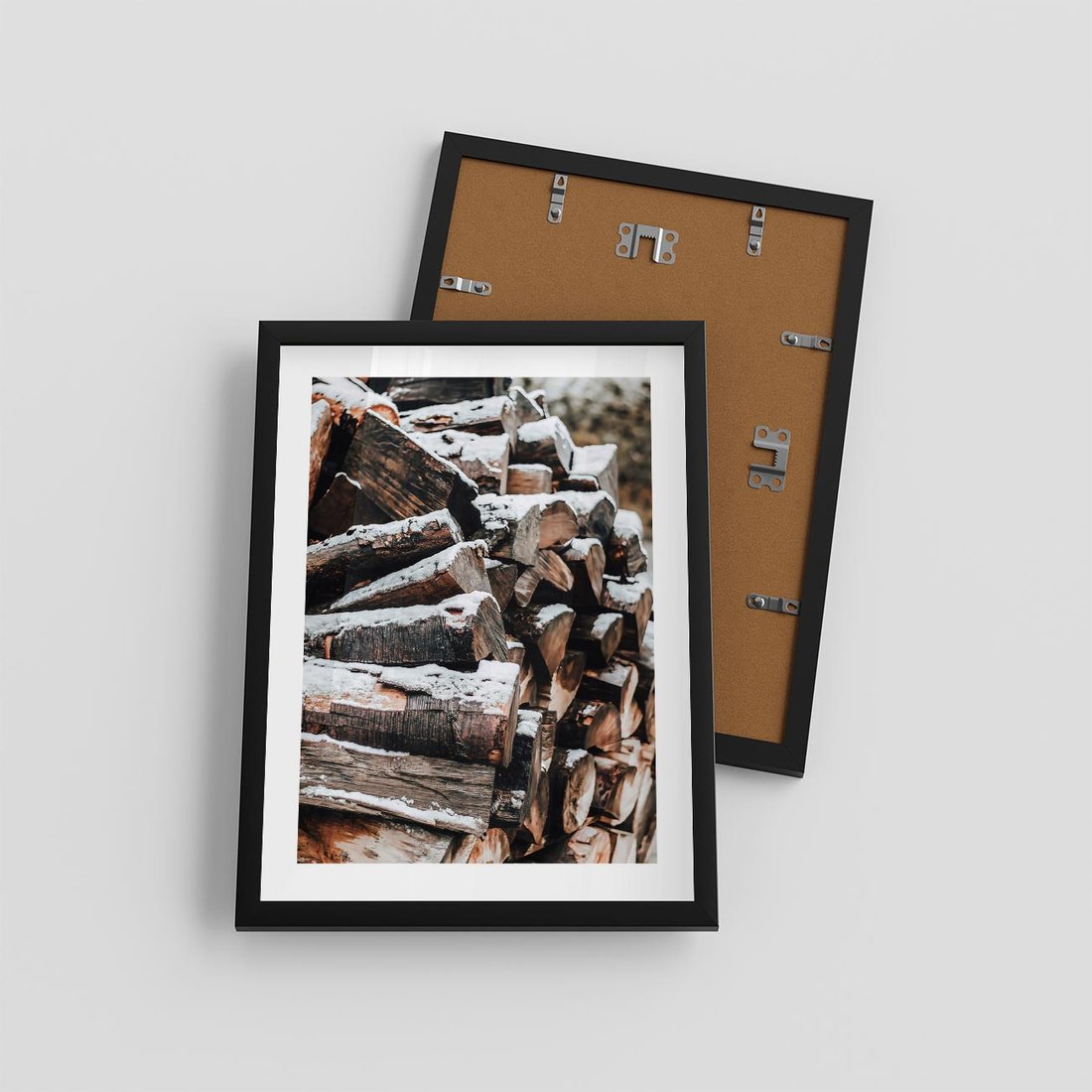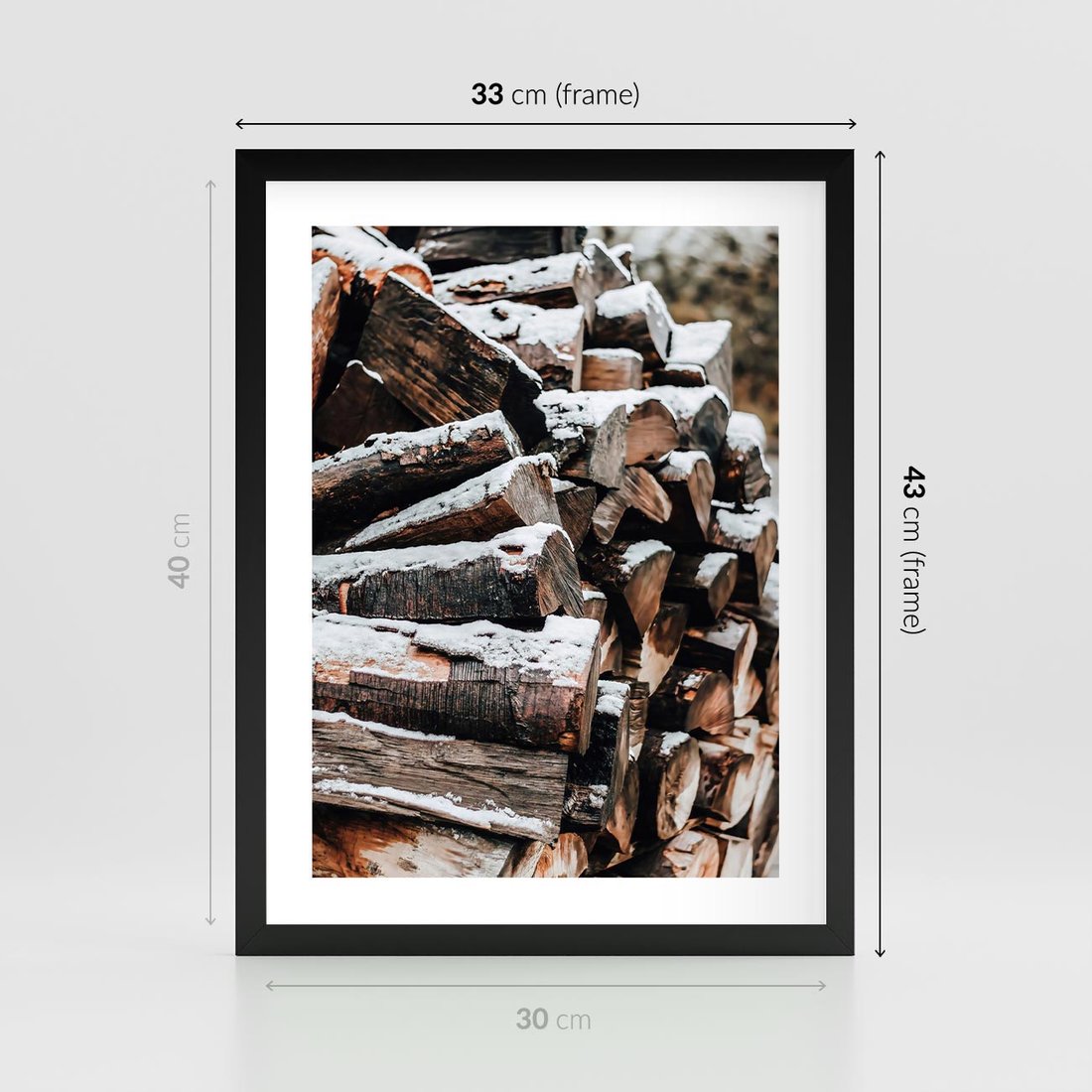 Plakat w ramie 30x40 - Zimowa Drewniana Idylla - drewno, kłody - rama czarna