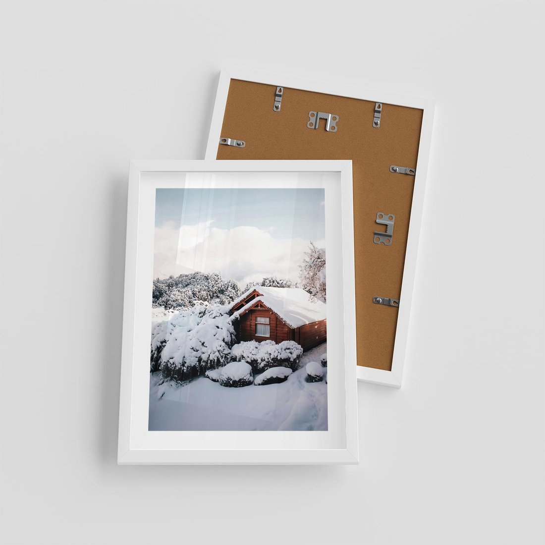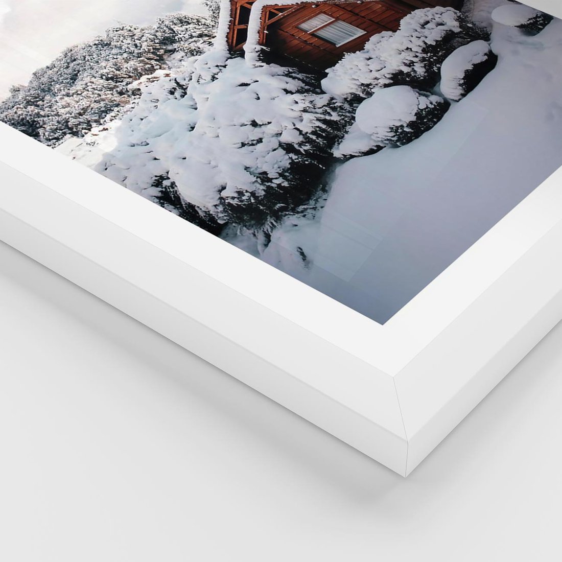 Plakat w ramie 30x40 - Zimowa Idylla w Górach - zima w górach, ośnieżone góry - rama biała