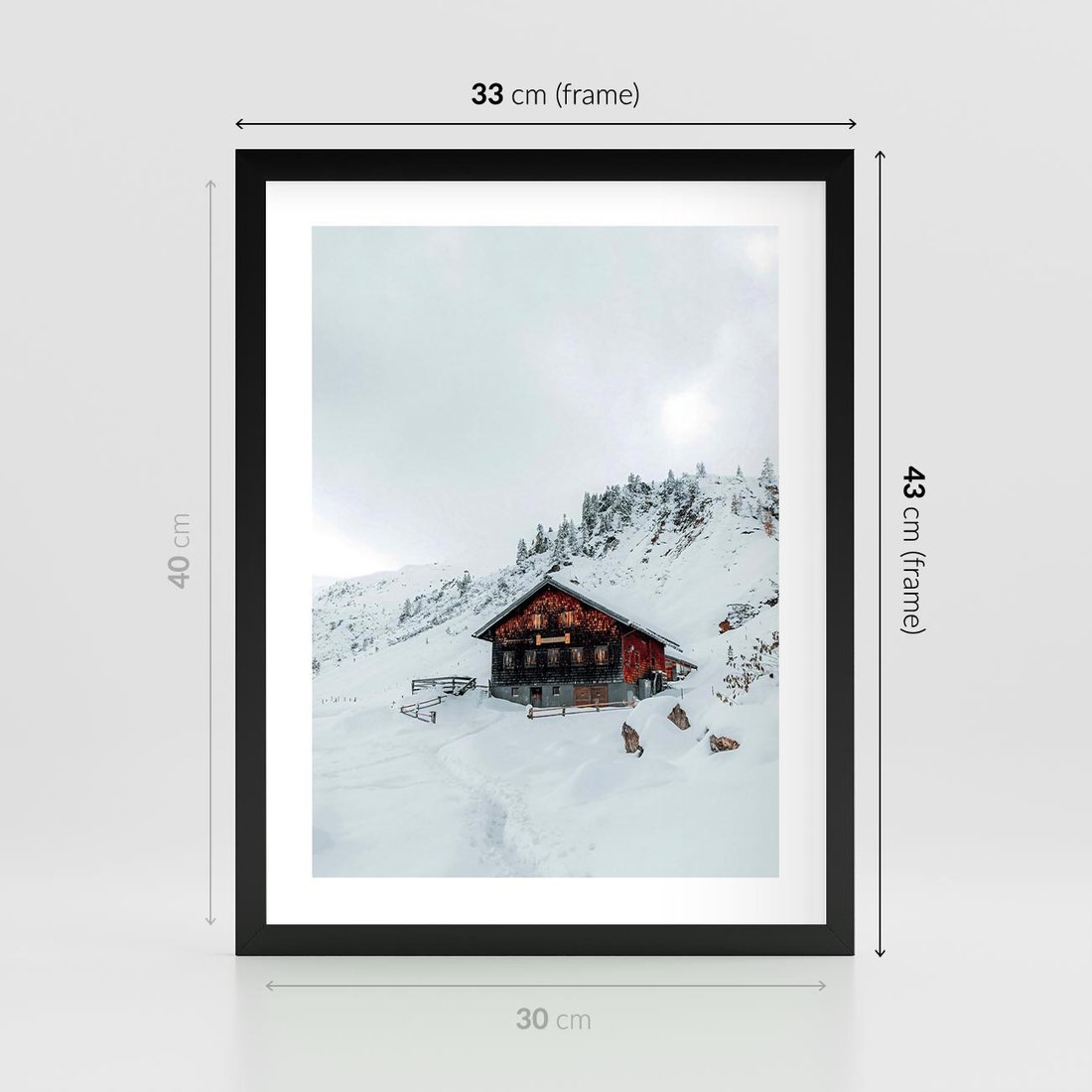 Plakat w ramie 30x40 - Zimowa Magia - domek, śnieg - rama czarna