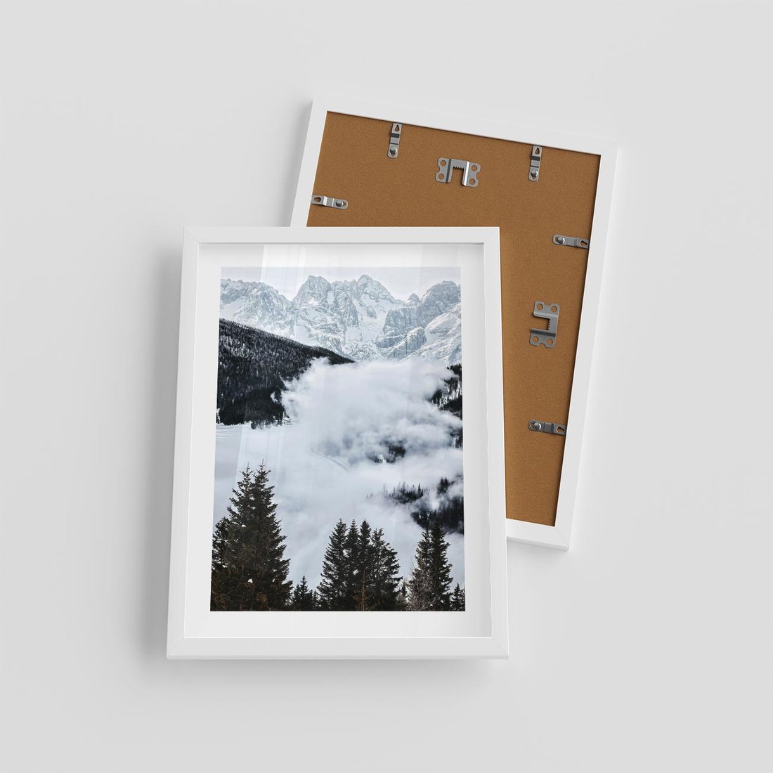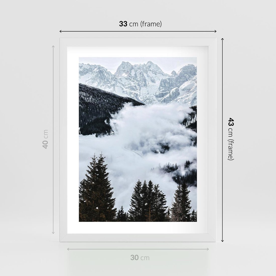 Plakat w ramie 30x40 - Zimowa Magia Gór: Śnieżne Szczyty - grajobraz górski, zima - rama biała