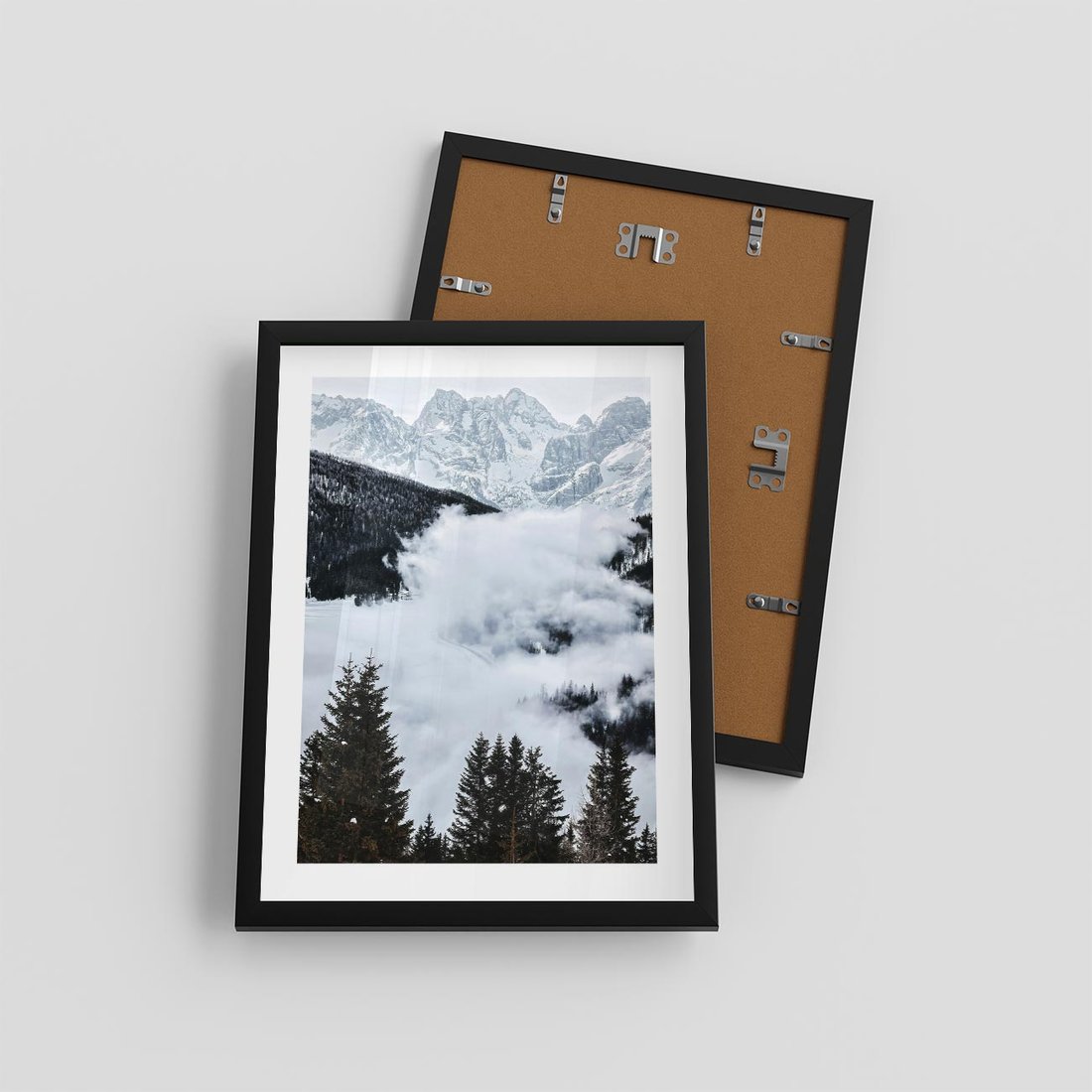 Plakat w ramie 30x40 - Zimowa Magia Gór: Śnieżne Szczyty - grajobraz górski, zima - rama czarna