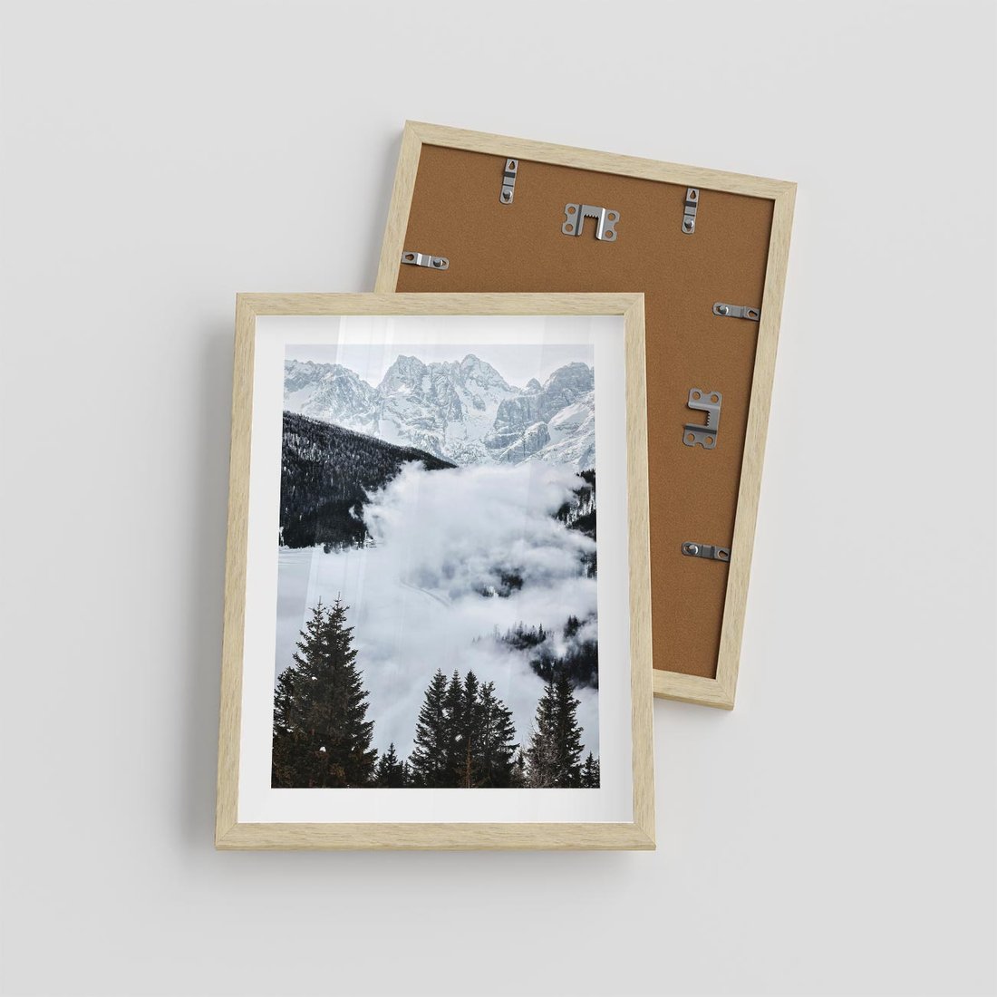 Plakat w ramie 30x40 - Zimowa Magia Gór: Śnieżne Szczyty - grajobraz górski, zima - rama drewno
