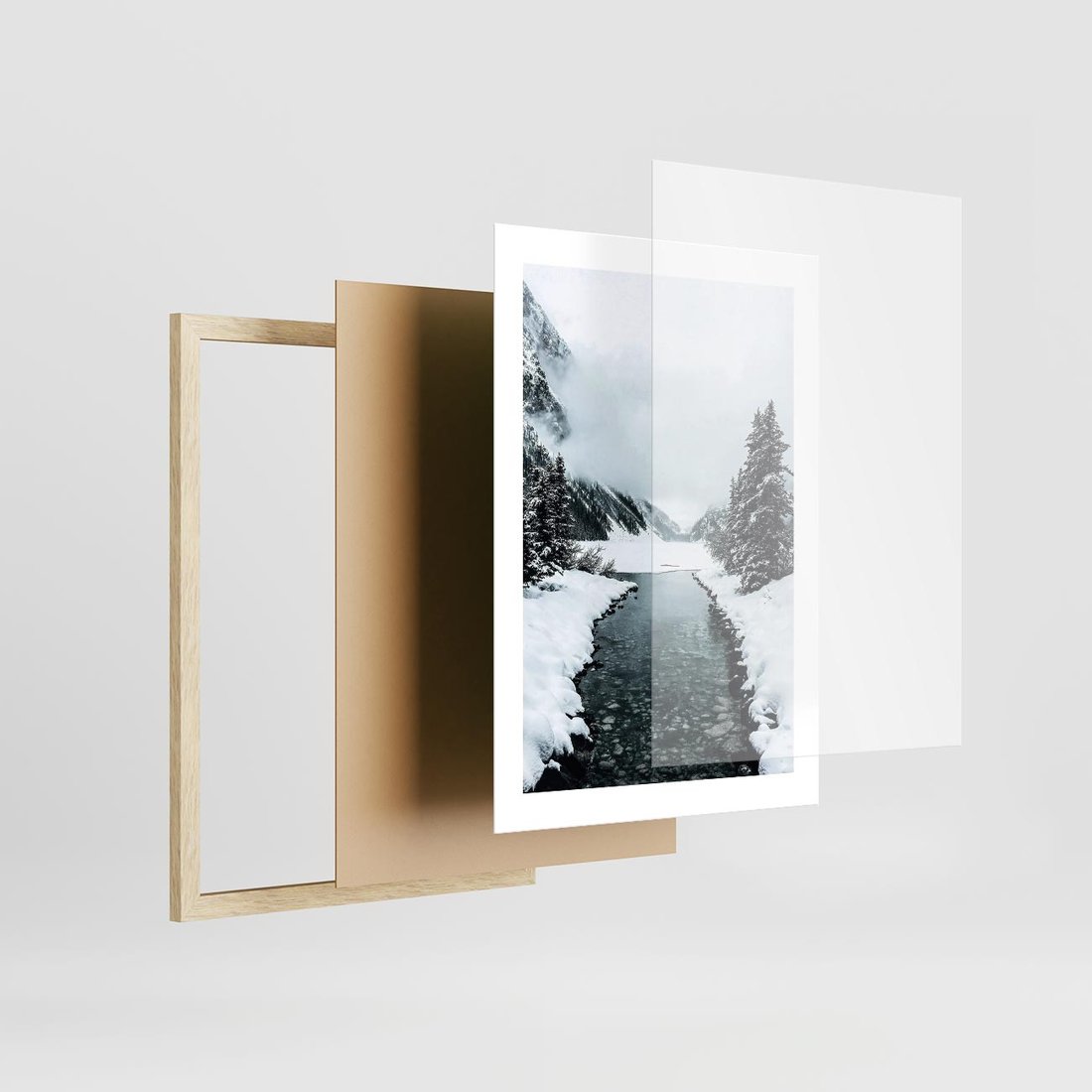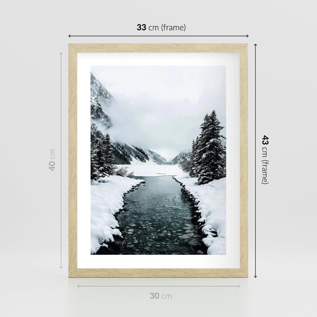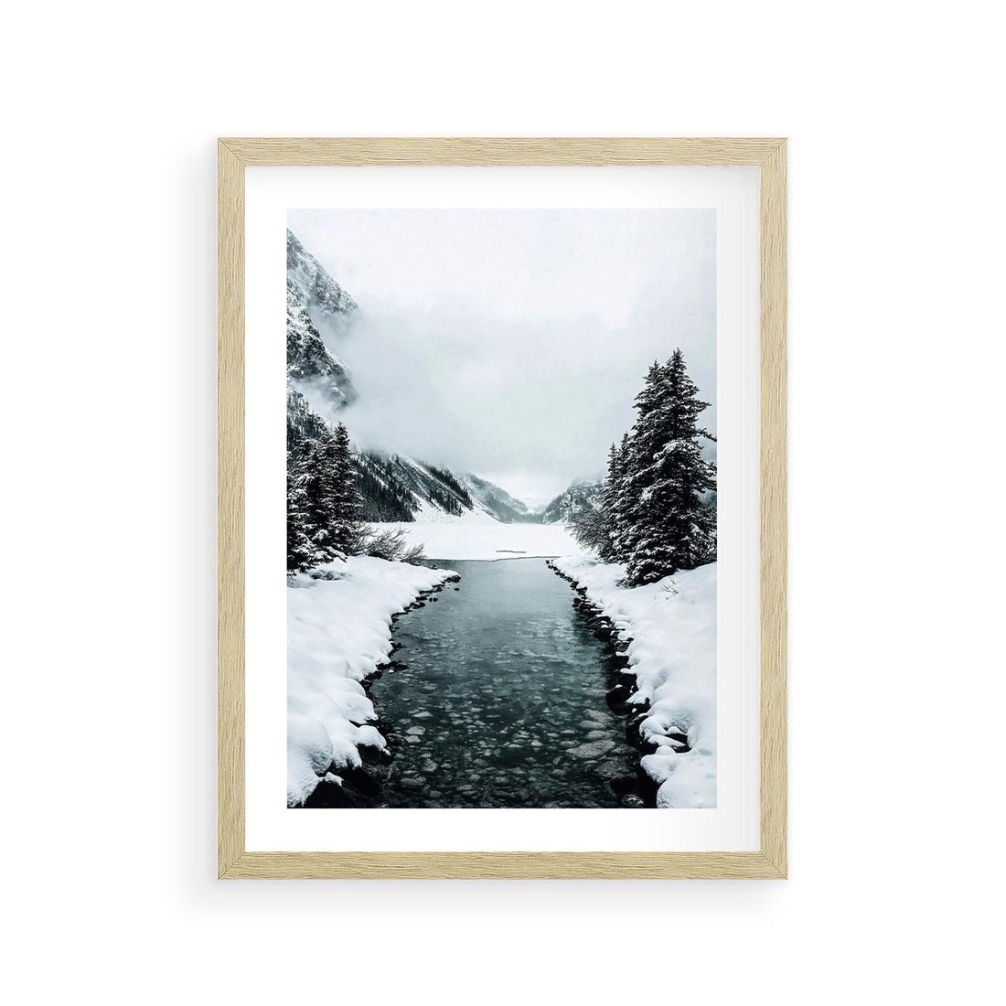 Plakat w ramie 30x40 - Zimowa Przyroda: Rzeka, Góry i Śnieg - zima, rzeka - rama drewno