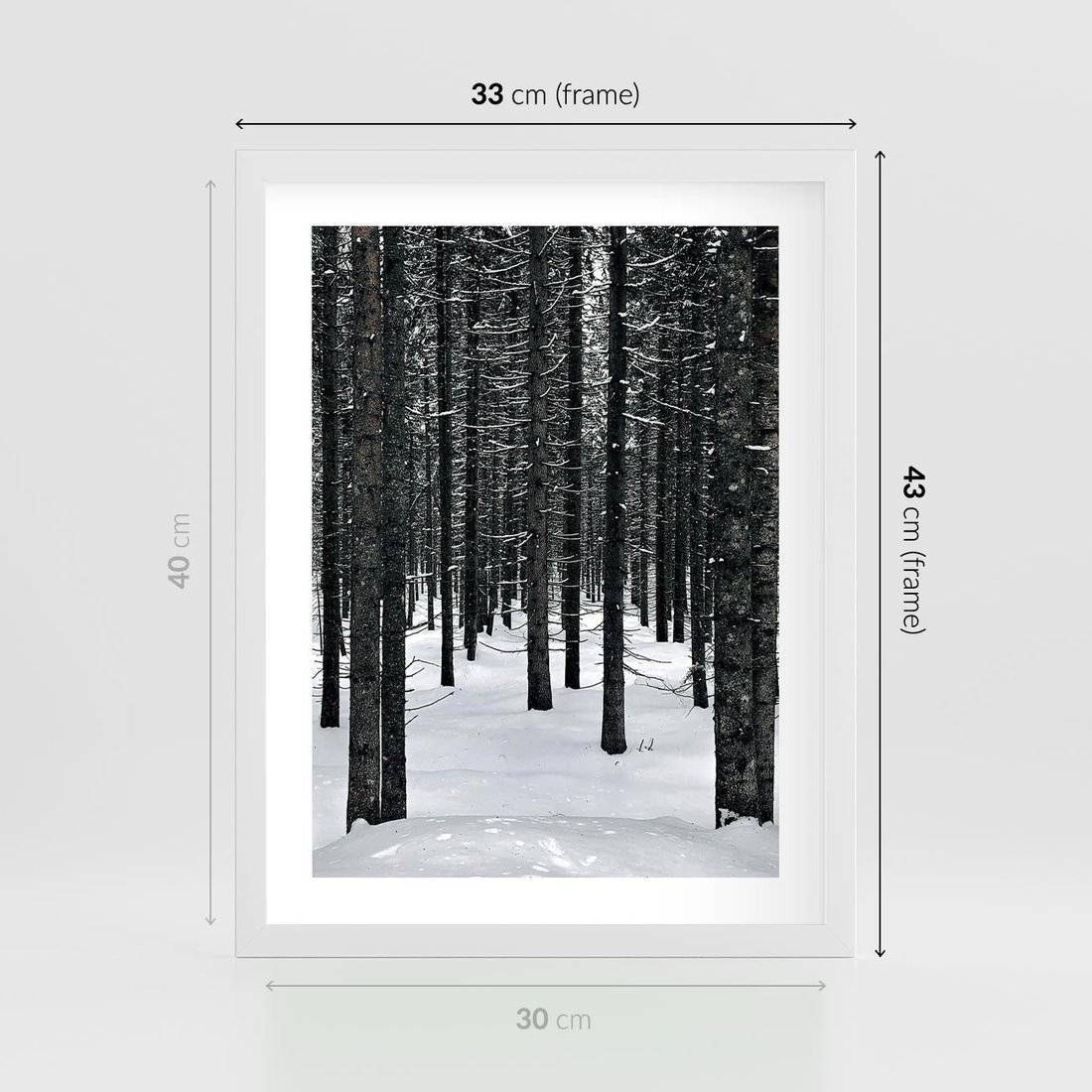 - Plakat w ramie 30x40 - Zimowe Drzewa: Śnieg na Pniach