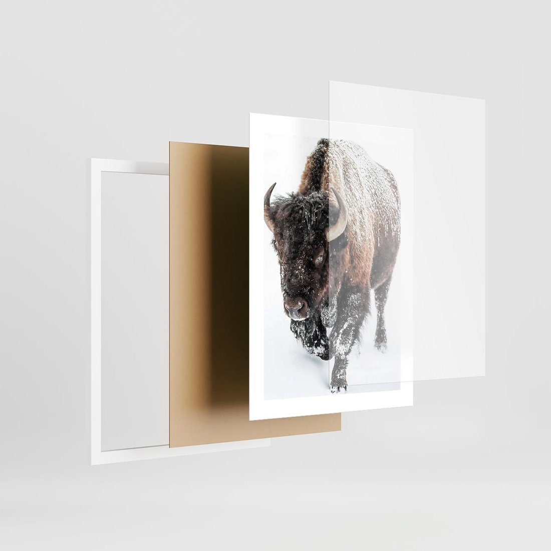 Plakat w ramie 30x40 - Zimowy Władca Puszczy - żubr, bizon - rama biała