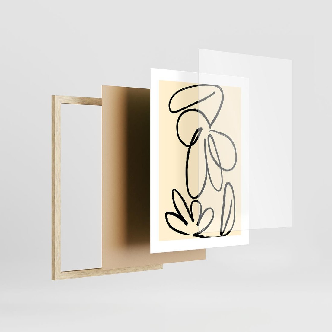 Nasza abstrakcyjna sztuka to delikatna kompozycja przypominająca kształtem kwiat. Wszystko to utrzymane jest w kontrastujących czerń i biel. To minimalizm w swojej najczystszej formie, gdzie subtelne linie tworzą elegancką i spokojną wizję, oddając hołd prostocie i pięknu.