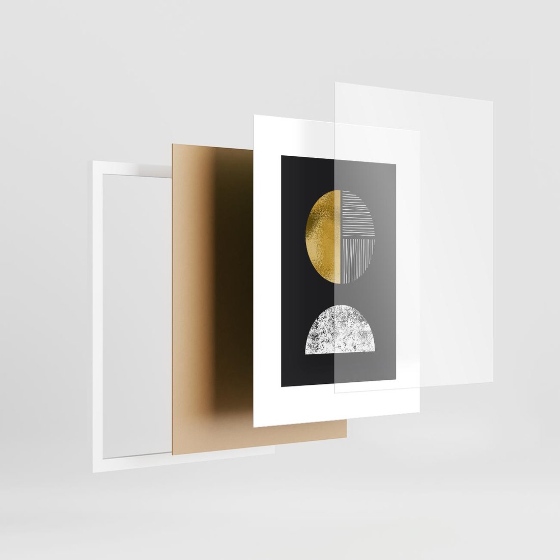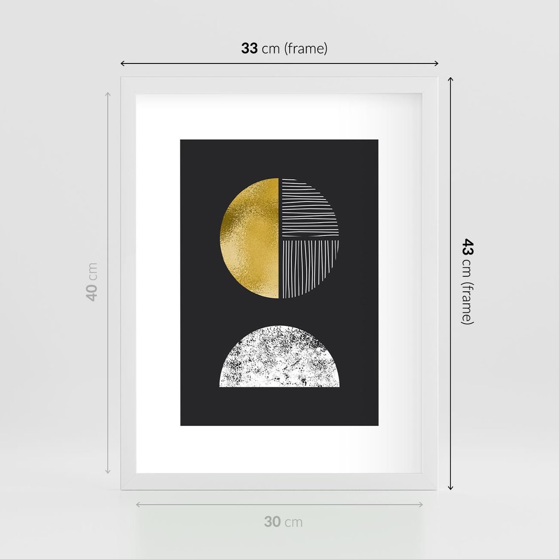- Plakat w ramie 30x40 - Złote Koła i Geometryczne Formy