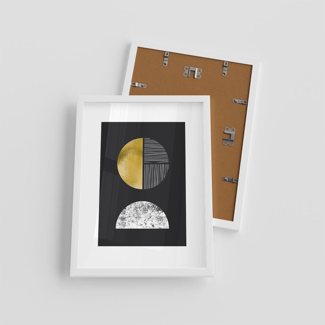 Plakat w ramie 30x40 - Złote Koła i Geometryczne Formy - grafika, modern - rama biała