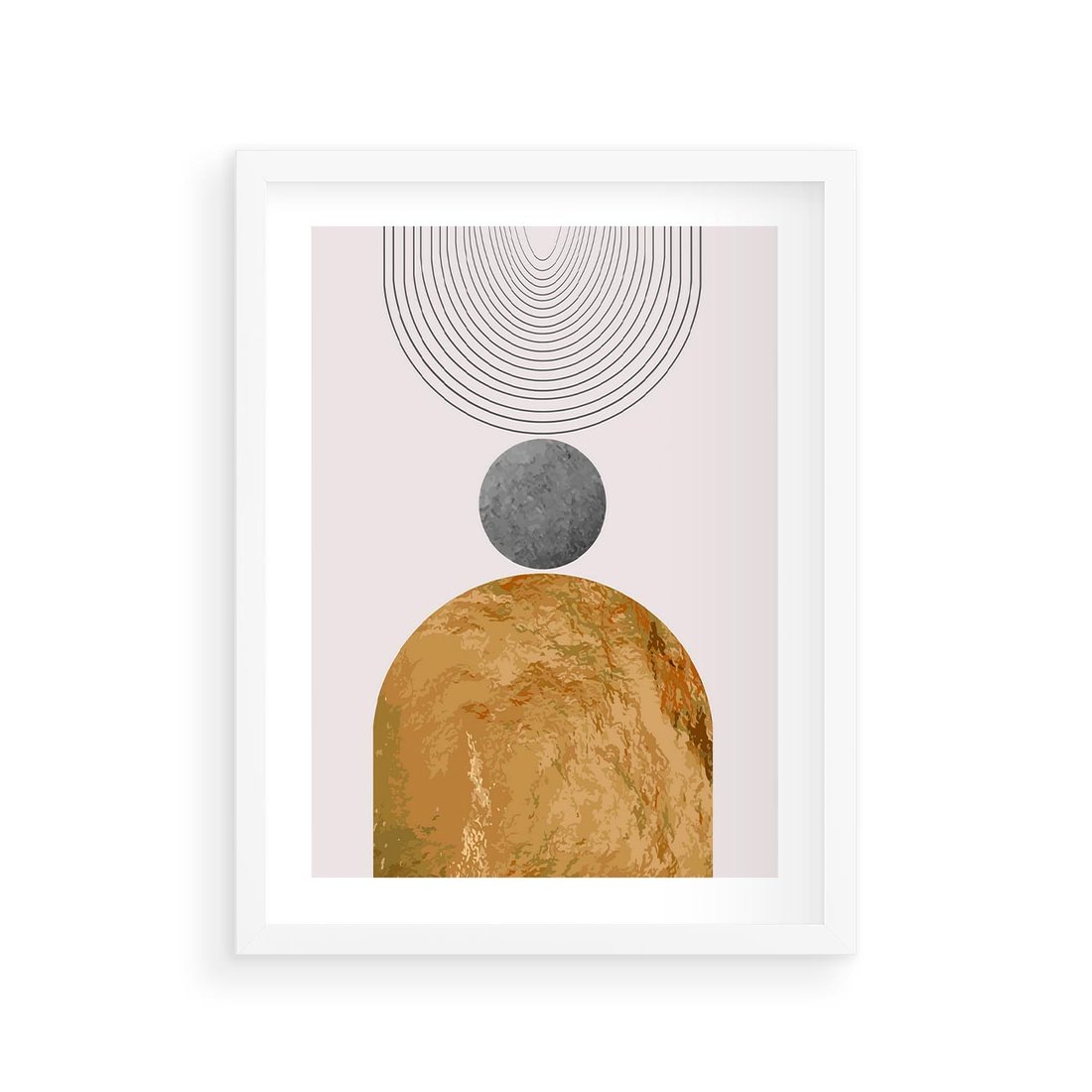 Plakat w ramie 30x40 - Złote Półkole w Sztuce Geometrii - grafika, złote półkole - rama biała