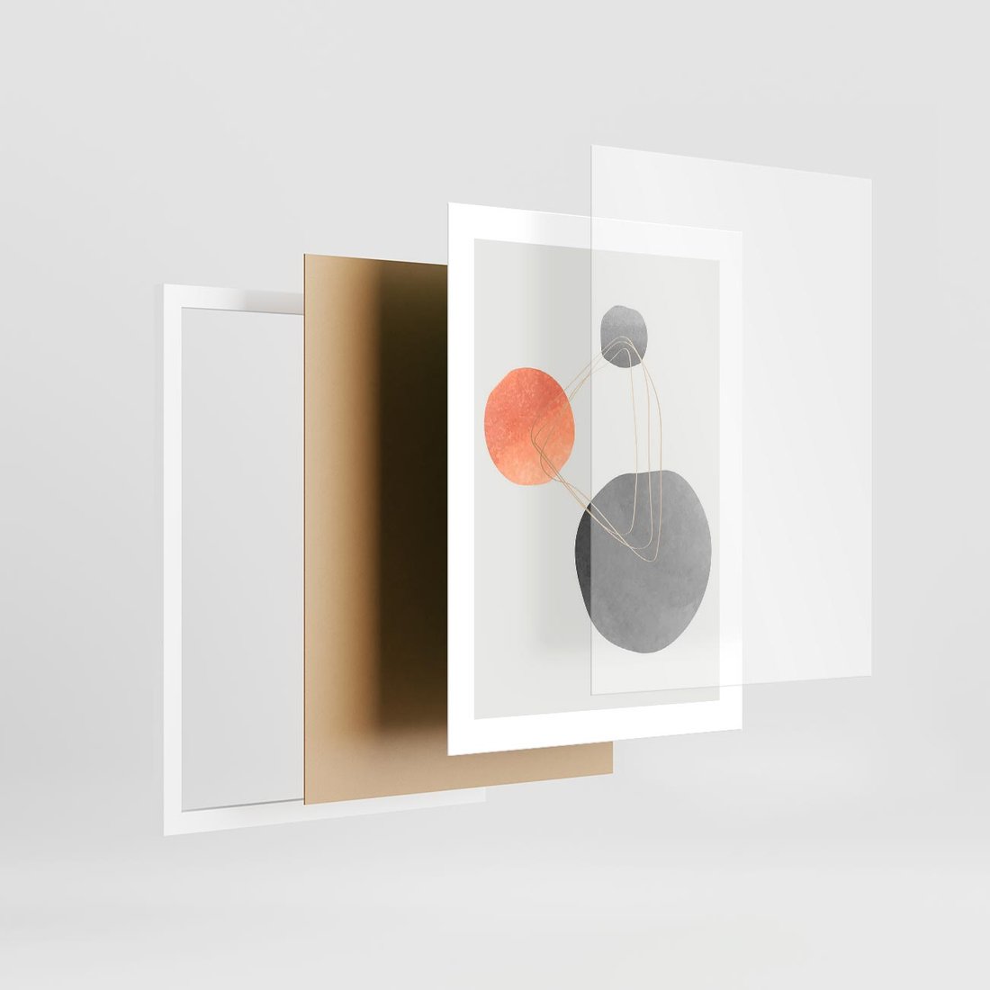Obraz przedstawia nowoczesny plakat o charakterze abstrakcyjnym, z wykorzystaniem złotych elementów i akwarelowych plam. Ta kompozycja dodaje elegancji i luksusowego wyglądu do wnętrza, idealnie pasując do nowoczesnych aranżacji.