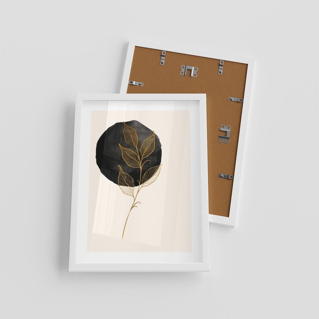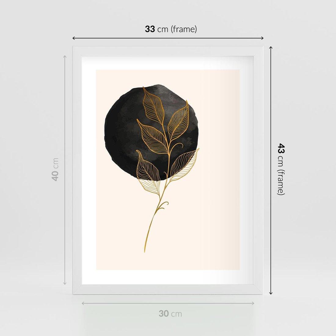- Plakat w ramie 30x40 - Złoty Liść na Czarnej Plamie