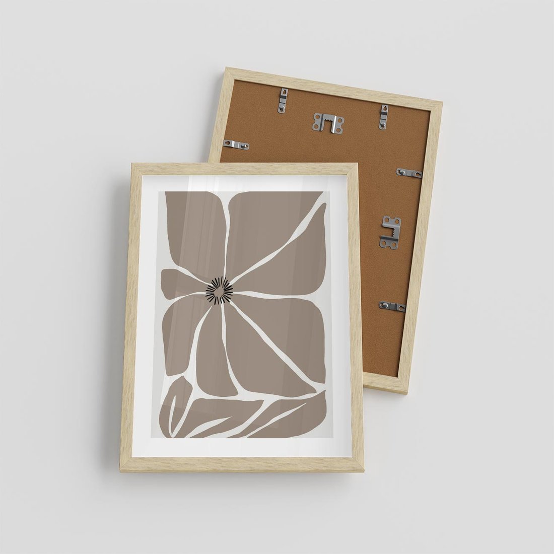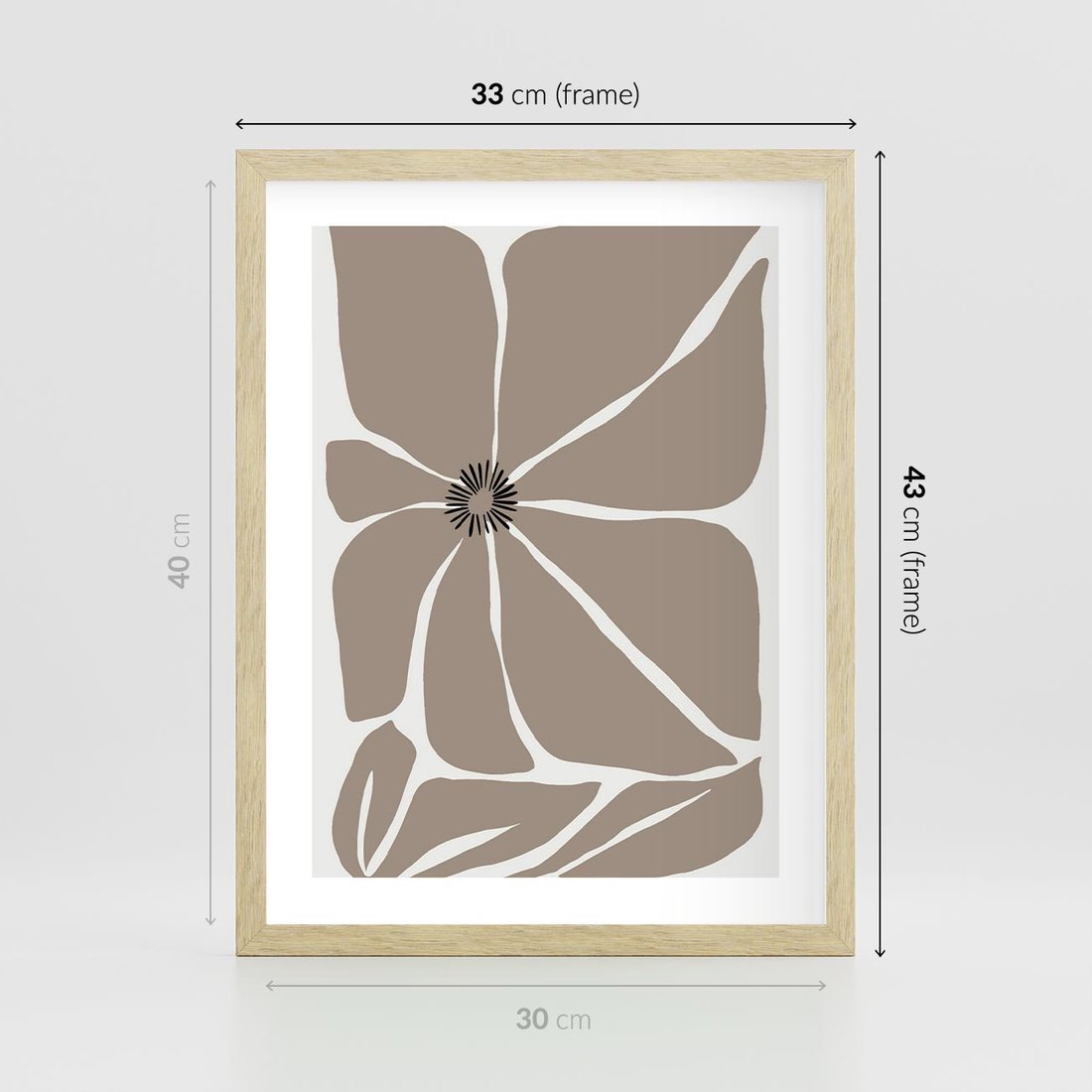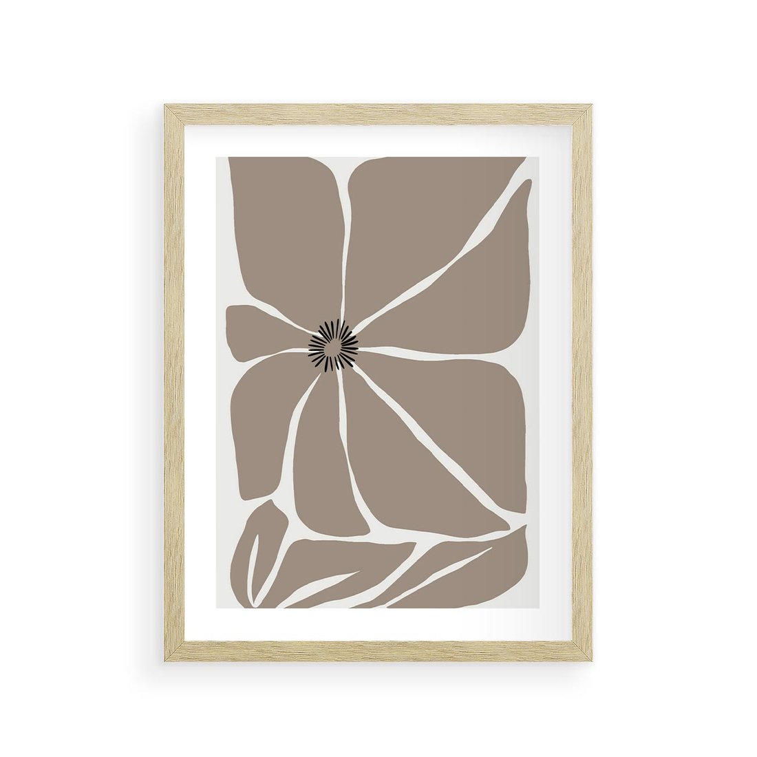 Plakat w ramie 30x40 - Złudne Zmysły - abstrakcyjny kwiat, beże i brązy - rama drewno