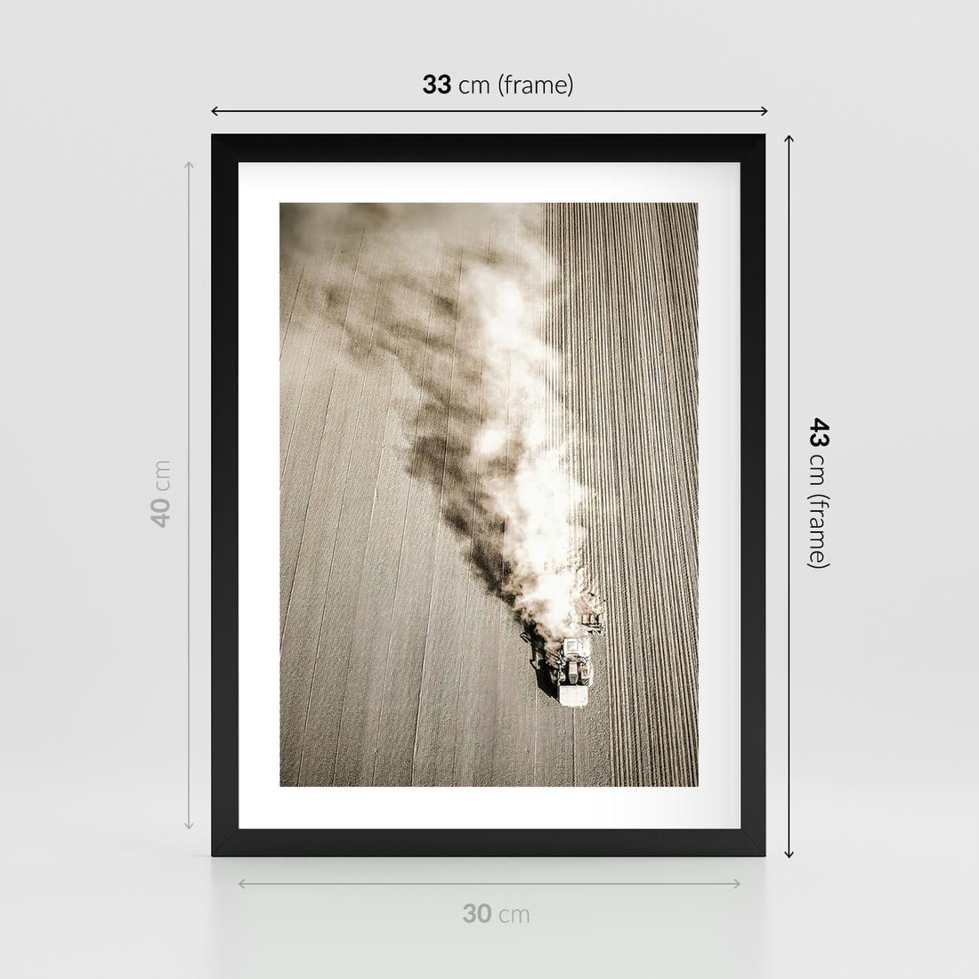 Plakat w ramie 30x40 - Żniwa na Wsi - pole, traktor na polu - rama czarna