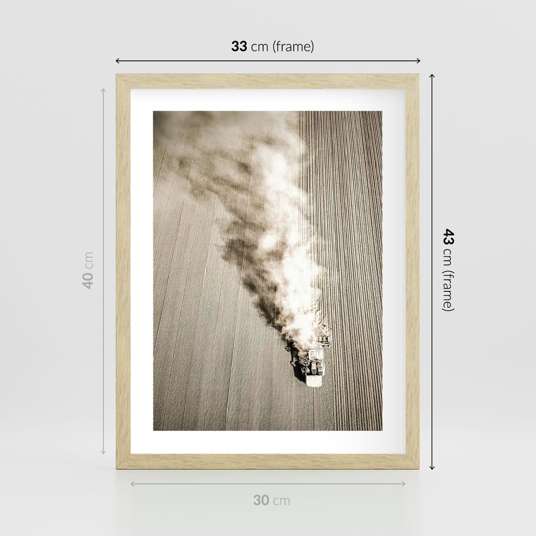 Plakat w ramie 30x40 - Żniwa na Wsi - pole, traktor na polu - rama drewno