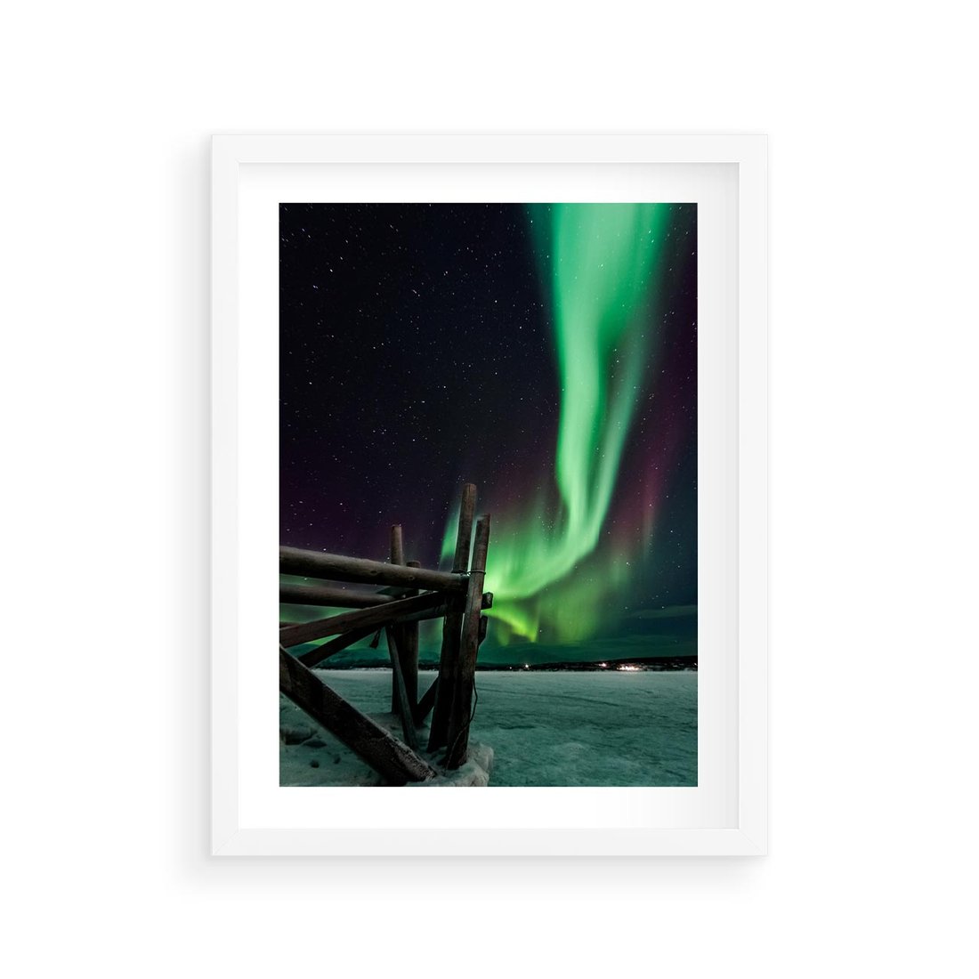 Plakat w ramie 30x40 - Zorza polarna w tajemniczej nocnej przestrzeni - zorza, polarna - rama biała