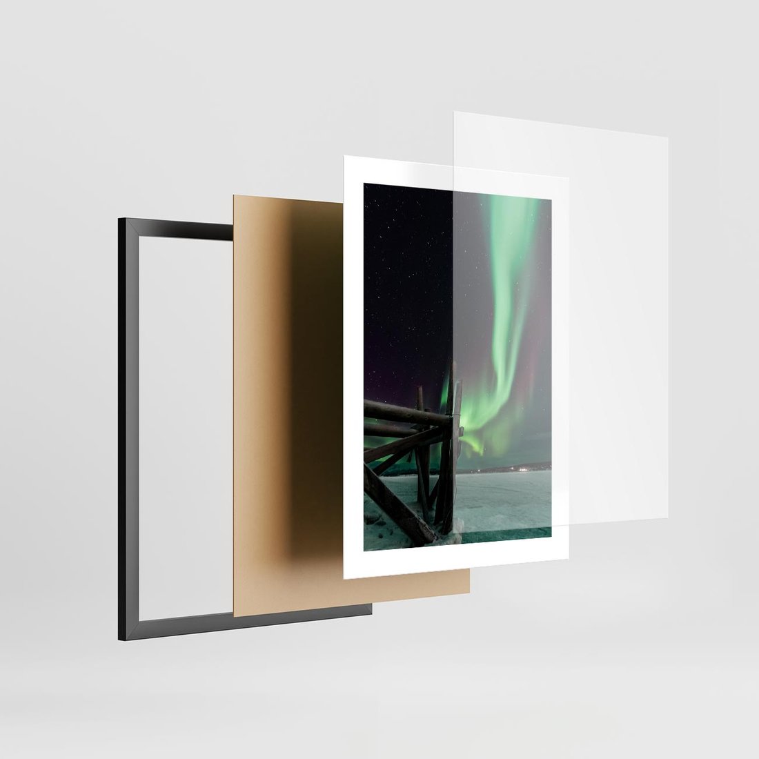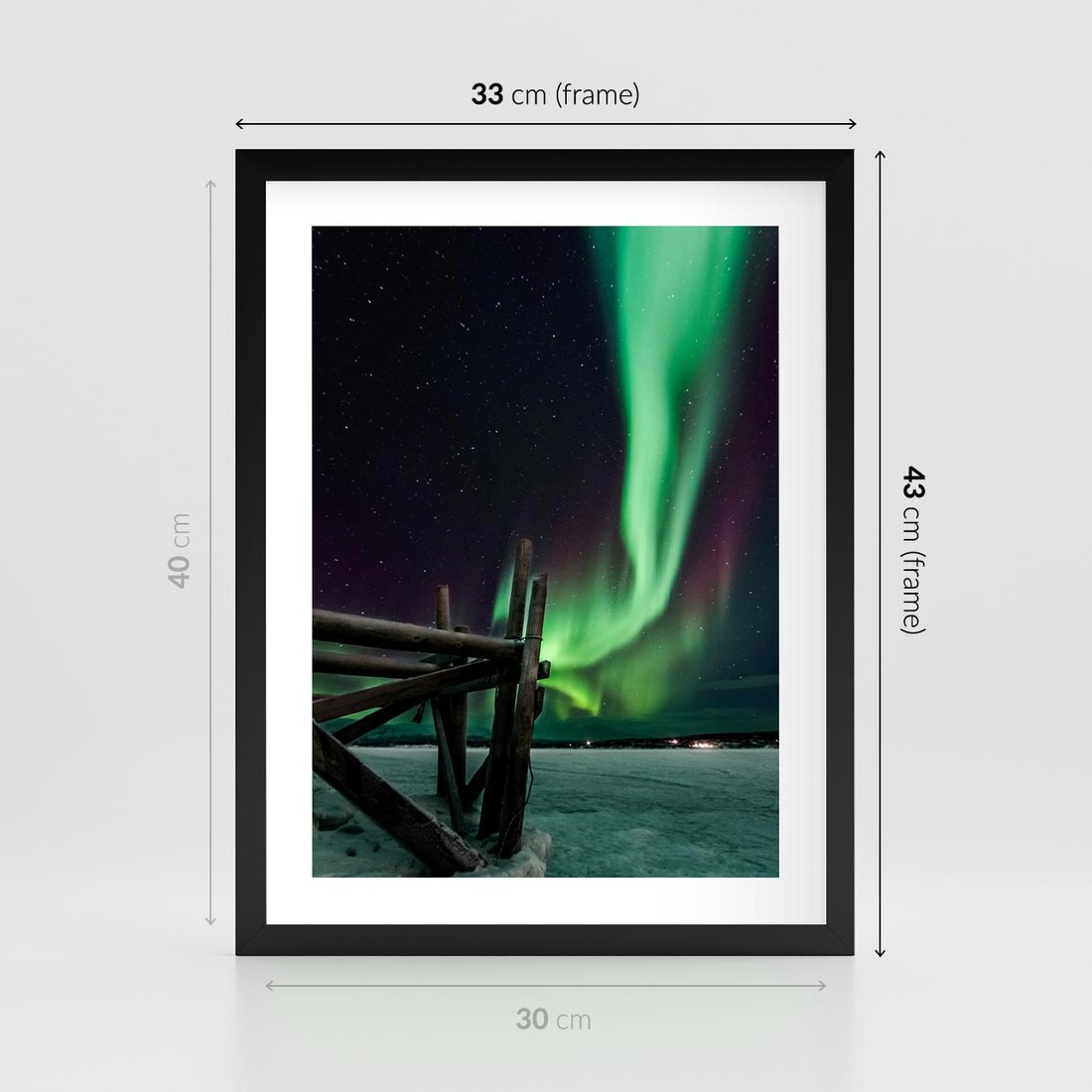 • Plakat w ramie 30x40 - Zorza polarna w tajemniczej nocnej przestrzeni