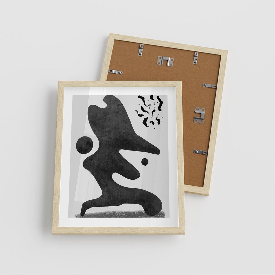 To nowoczesna grafika abstrakcyjna w czarno-białym stylu, która eksploruje formy i kontrasty, tworząc niekonwencjonalne wzory.